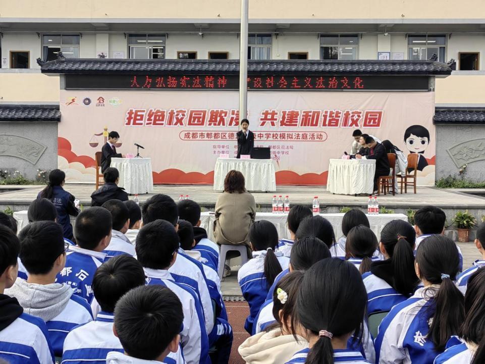 在德源中學(xué),一場(chǎng)別開(kāi)生面的“模擬法庭”活動(dòng)正在莊嚴(yán)地進(jìn)行,庭審中,15名青少年化身審判員、書(shū)記員、公訴人、辯護(hù)人、法警等角色,共同參與審理一起校園欺凌案件,活動(dòng)通過(guò)還原庭審過(guò)程,讓師生們“沉浸式”感受法律威嚴(yán)?;顒?dòng)中,德源司法所的工作人員還為同學(xué)們送上憨態(tài)可掬的“法治熊貓”。