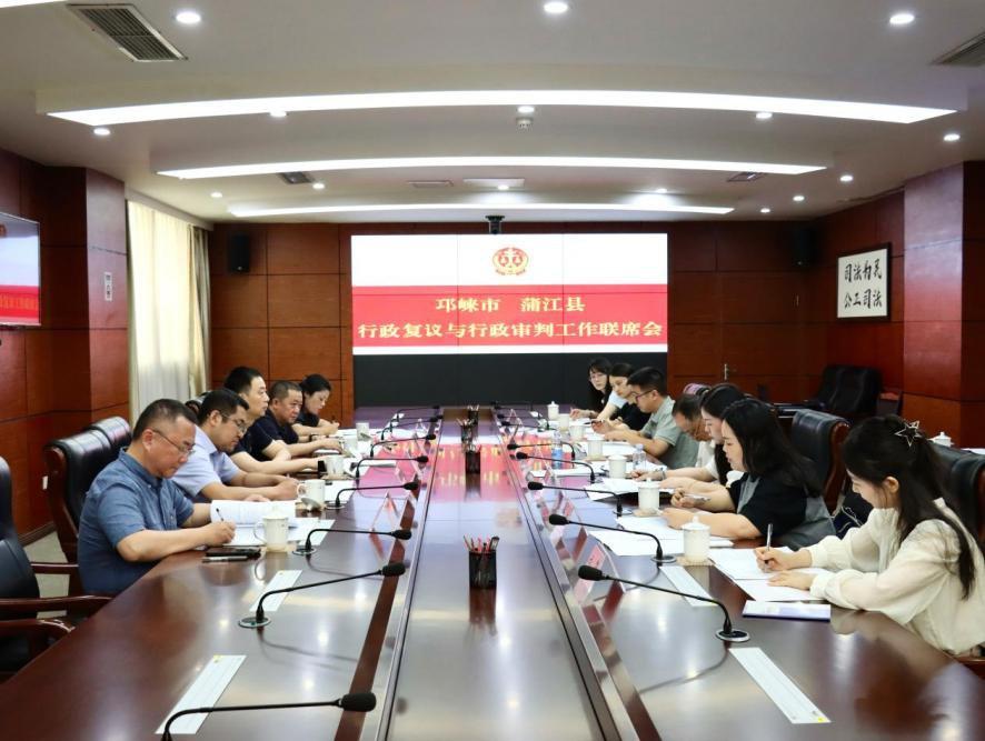 為深入貫徹落實《中華人民共和國行政復(fù)議法》,完善行政爭議多元化解機制,強化行政復(fù)議與行政訴訟銜接,力爭行政爭議在訴前、訴中化解,切實提升依法行政水平,近日,四川蒲江、邛崍兩地聯(lián)合召開行政復(fù)議與行政審判工作聯(lián)席會。蒲江縣副縣長、縣公安局局長王軒,蒲江縣法院黨組書記、院長吳爽,邛崍市法院黨組書記、院長鄧夏,以及相關(guān)部門負責(zé)人參加會議。