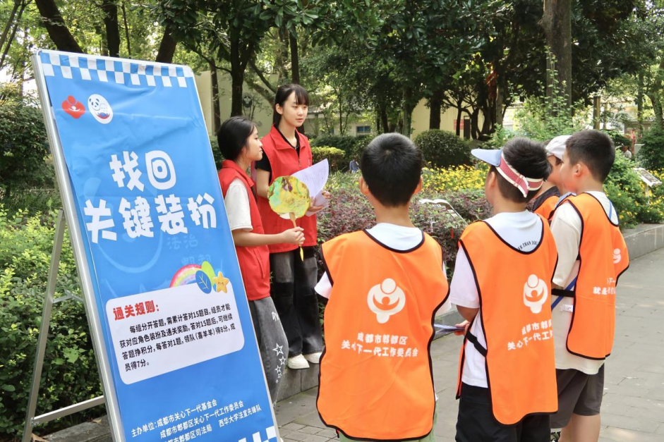 近日,由四川省成都市郫都區(qū)關(guān)工委、司法局、禁毒辦、西華大學(xué)聯(lián)合舉辦的法治研學(xué)夏令營(yíng)正式拉開(kāi)序幕。研學(xué)之旅以憲法為主題,設(shè)置法治漆扇、憲法拼圖、找回關(guān)鍵裝扮、解救村長(zhǎng)四個(gè)關(guān)卡,吸引40余名小學(xué)生及家長(zhǎng)參與,在大學(xué)生普法志愿者的帶領(lǐng)下不斷闖關(guān),玩游戲、學(xué)知識(shí),讓法治的種子在每一個(gè)小學(xué)生的心中悄然生根。