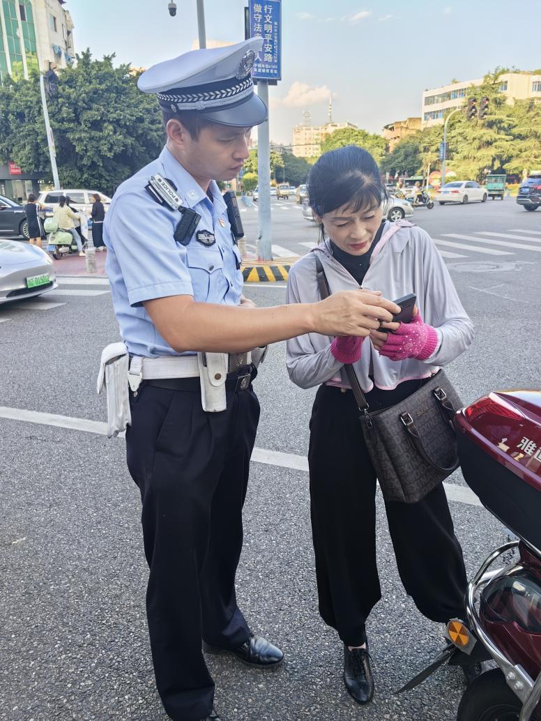 去年冬天的一個下雨天,一輛面包車為了趕時間,在路口處沒有禮讓行人,正好被張庚義攔下。司機(jī)停下來,遞上煙笑著說:“張警官,我有點(diǎn)急事,你看也沒有撞到別人,你就通融下唄?”張庚義卻沒接煙,指著車道線嚴(yán)肅道:“師傅,路口斑馬線有行人通過時,應(yīng)停一停等行人先過,斑馬線是規(guī)矩,也是安全線。今天您覺得‘剎車及時’沒事,要是你剎車不及時,行人也沒預(yù)判到,雨天剎車慢,萬一撞了,您和別人的家都得受影響?!闭f著,他拿出執(zhí)法記錄儀,仔細(xì)核對車輛信息,按規(guī)定開出罰單,又耐心給司機(jī)講了交通風(fēng)險案例。司機(jī)一開始不服氣,聽著聽著卻紅了臉,最后握著張庚義的手說:“您說得對,是我圖省事沒把安全當(dāng)回事,這罰單我認(rèn)!”