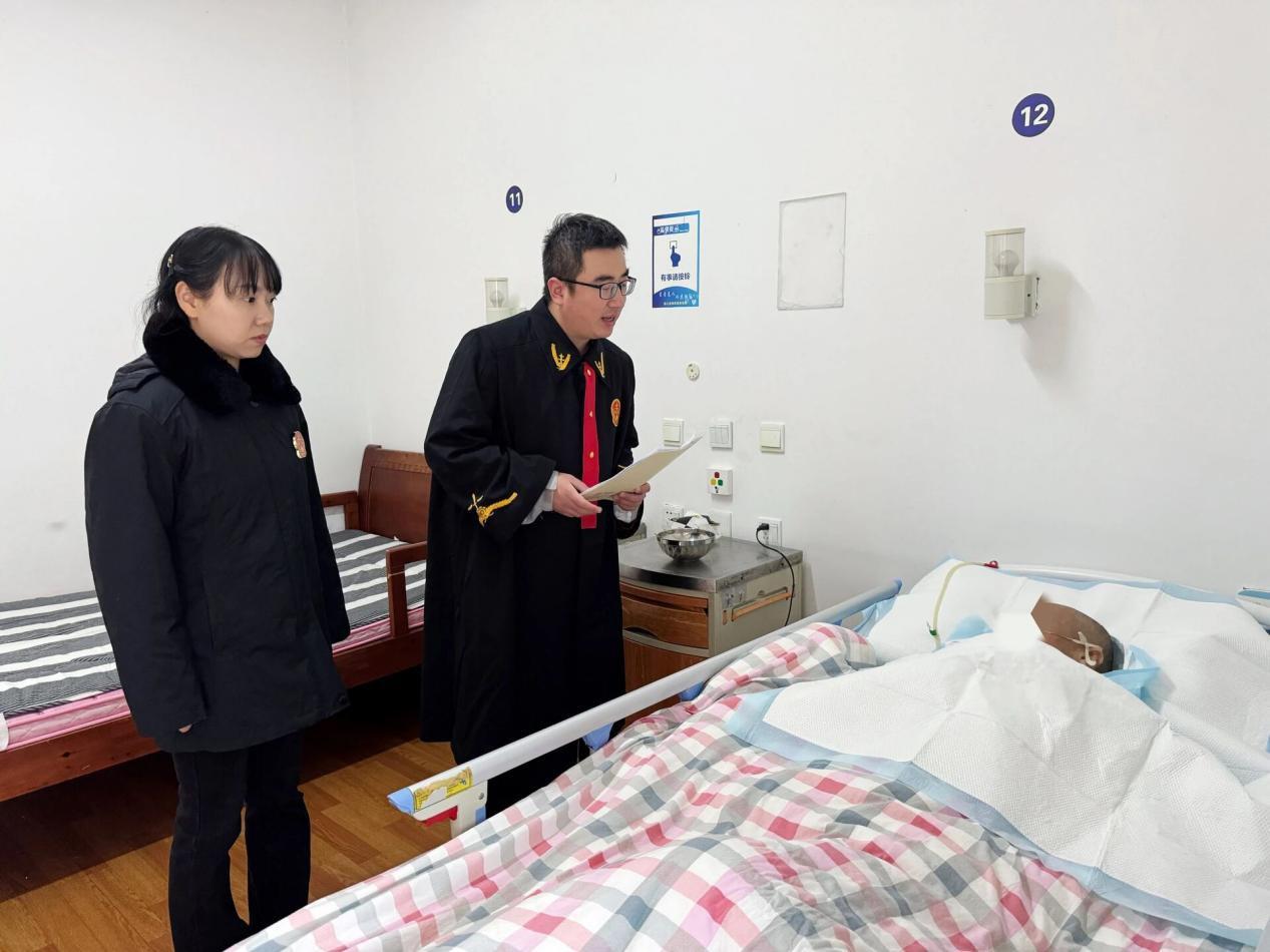 考慮到楊某的身體狀況,法官沒有讓司法程序困住這個困頓的家庭,而是做出了最暖心的決定——將庭審搬到了楊某所在的養(yǎng)老院中。