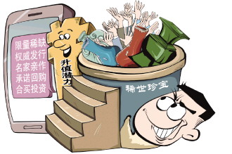 讓普通的流水線作業(yè)、批量生產(chǎn)的大路貨、地攤貨,搖身變成大師之作、稀缺限量的“藏品”,到這里還不算完,在銷售環(huán)節(jié)還會有一系列令人眼花繚亂的操作,對作者進行虛假包裝,對“藏品”的收藏價值、升值空間進行虛構等。