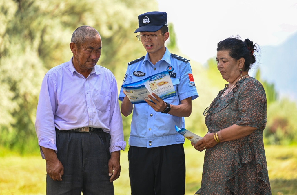 7月9日,新疆出入境邊防檢查總站克州邊境管理支隊膘爾托考依邊境派出所民警走進轄區(qū)、村社,開展反詐宣傳活動。民警為居民發(fā)放防范電信網(wǎng)絡(luò)詐騙宣傳手冊等反詐宣傳資料,從多角度向居民分析電信網(wǎng)絡(luò)詐騙的特點、種類、危害性及防范技巧,進一步提升轄區(qū)群眾的自我防護意識。