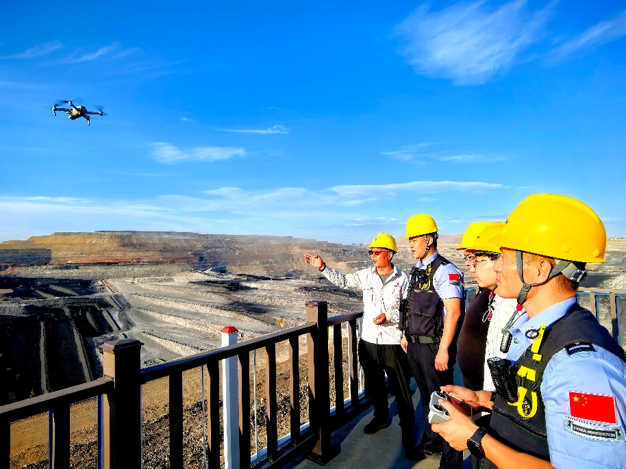圖為8月5日下午,北山煤礦邊境派出所聯(lián)合當?shù)刈匀毁Y源等部門啟用警用無人機進行空中巡檢排查。