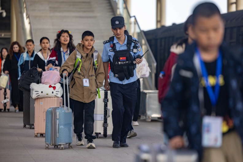 秋風送爽,全國各地中小學陸續(xù)開學,各地火車站迎來客流高峰,為保障旅客乘車安全,連日來,烏魯木齊鐵路公安局喀什公安處堅持“囤警于面、顯性用警”,嚴格落實治安管理責任,多措并舉加強服務保障,相繼增設“引導崗”“維序崗”“先鋒崗”,全面強化治安防控、隱患排查,以“全天候”守護、“暖心式”服務、“零距離”普法等形式,護航入學返校師生平安出行。
