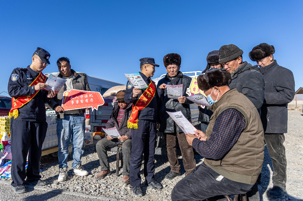 1月13日,新疆出入境邊防檢查總站克州邊境管理支隊(duì)吐古買提邊境派出所普法宣傳小分隊(duì)依托轄區(qū)法治驛站及鄉(xiāng)村巴扎(集市)日,向轄區(qū)群眾開展普法宣傳。民警通過案例講解、發(fā)放資料、答疑解惑等方式,重點(diǎn)普及電信網(wǎng)絡(luò)詐騙的常見手法與防范措施,講解毒品危害及相關(guān)法律法規(guī),有效提升轄區(qū)群眾的安全防范意識與法治觀念,筑牢安全防線。