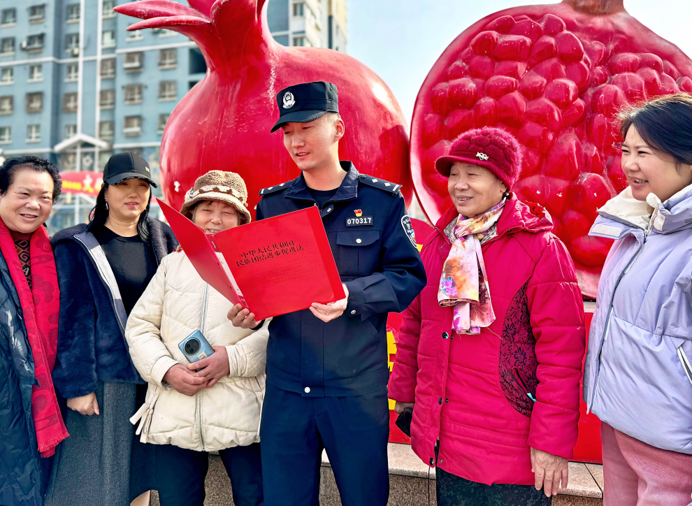 就在不遠(yuǎn)處的廣場上,民警龐振超也被幾位居民圍住。他手里拿著一沓普法宣傳冊,講的卻是身邊的事兒:“咱們鄰居們之間平時互相幫襯,和和氣氣的,日子才能越過越好?!?/p>