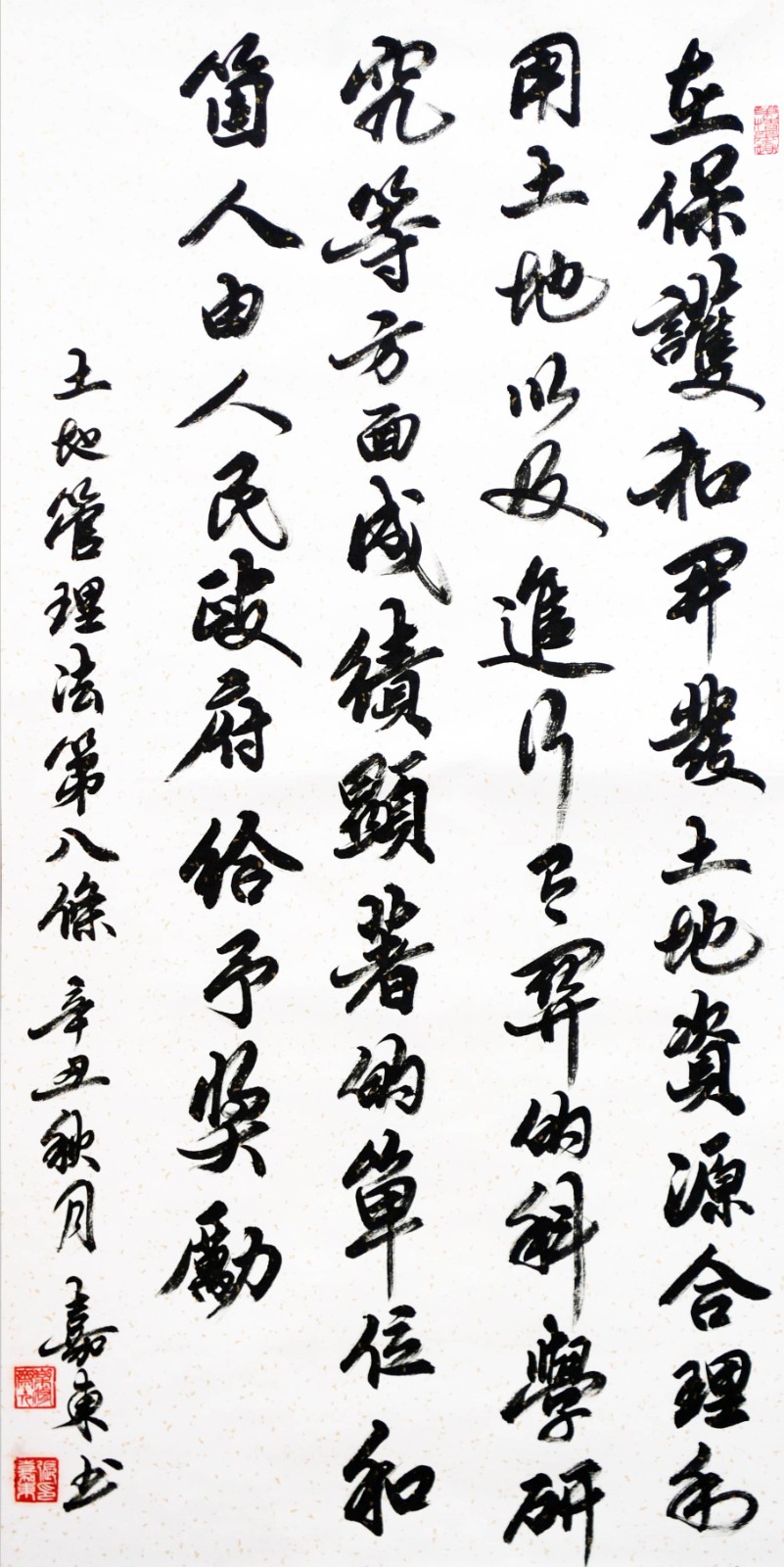 繼1600余位書法家參與書寫《中華人民共和國民法典》全部1260條法條之后,法治日報社聯(lián)合自然資源部法規(guī)司、自然資源部書畫研究會和北京昌平書法家協(xié)會,將筆端對準(zhǔn)土地管理“一法一條例”,即《中華人民共和國土地管理法》和《中華人民共和國土地管理法實(shí)施條例》。