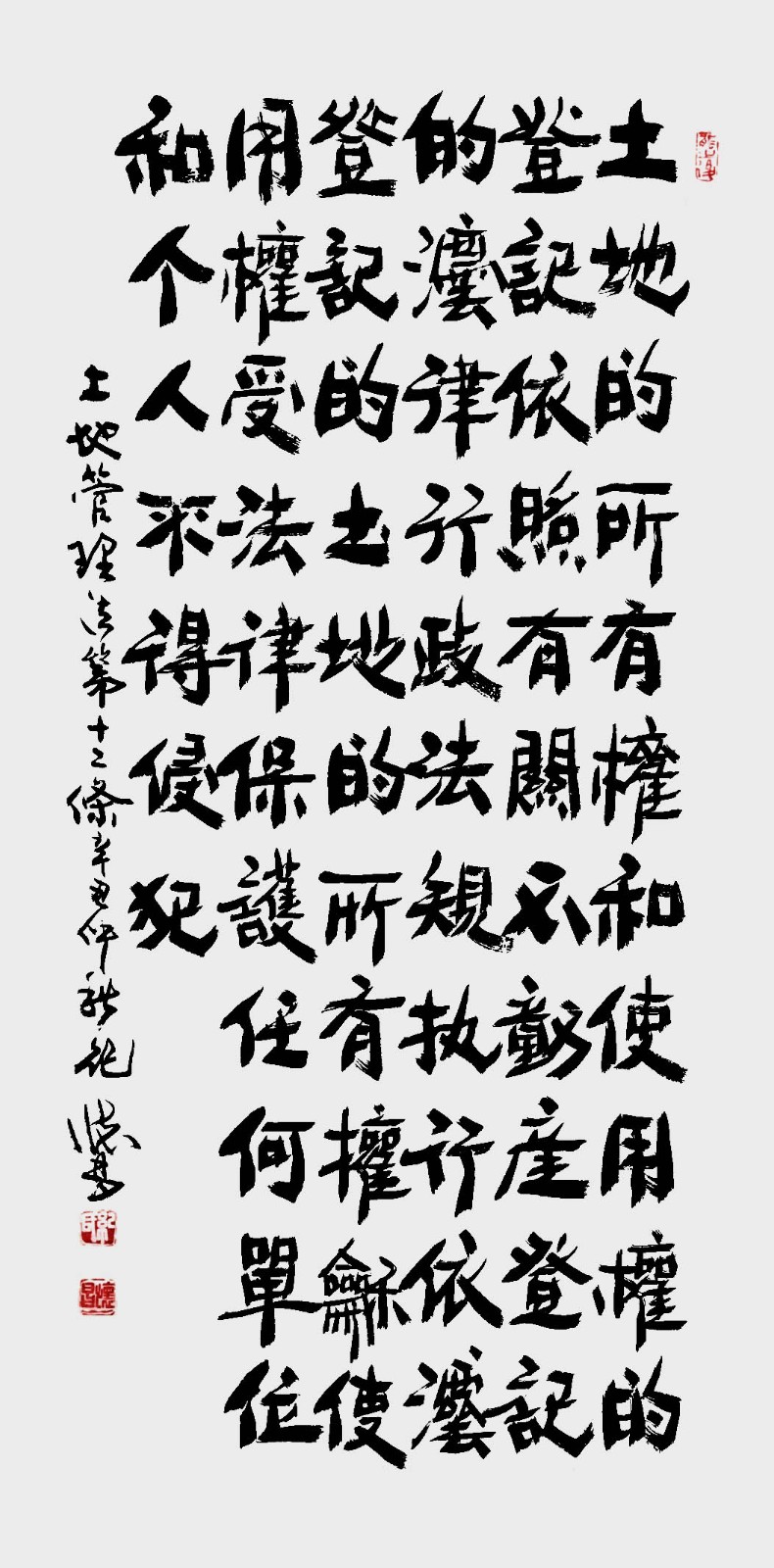 繼1600余位書法家參與書寫《中華人民共和國民法典》全部1260條法條之后,法治日報(bào)社聯(lián)合自然資源部法規(guī)司、自然資源部書畫研究會(huì)和北京昌平書法家協(xié)會(huì),將筆端對準(zhǔn)土地管理“一法一條例”,即《中華人民共和國土地管理法》和《中華人民共和國土地管理法實(shí)施條例》。
