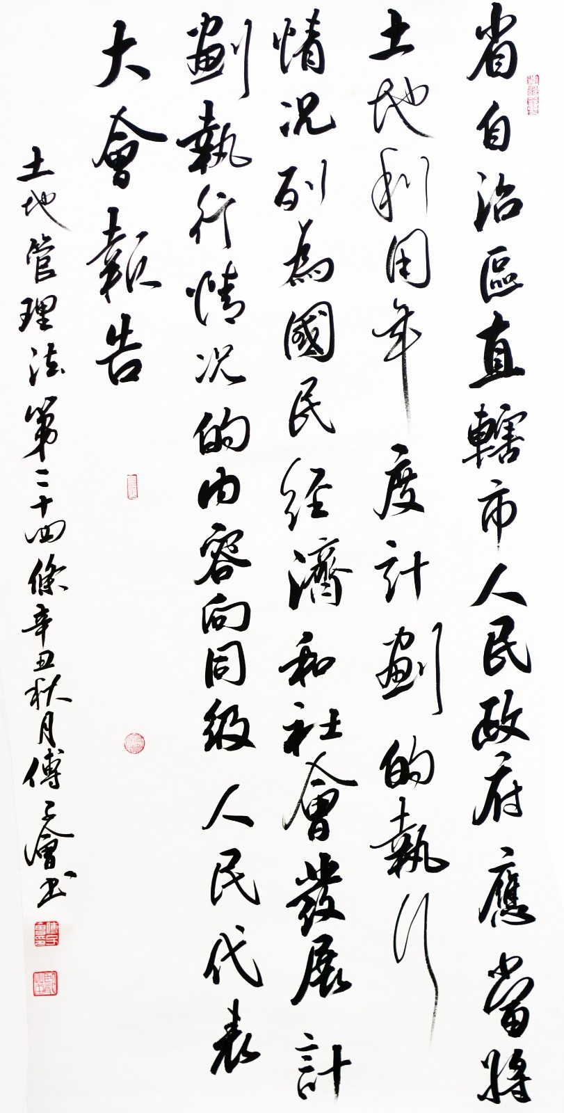 繼1600余位書法家參與書寫《中華人民共和國民法典》全部1260條法條之后,法治日?qǐng)?bào)社聯(lián)合自然資源部法規(guī)司、自然資源部書畫研究會(huì)和北京昌平書法家協(xié)會(huì),將筆端對(duì)準(zhǔn)土地管理“一法一條例”,即《中華人民共和國土地管理法》和《中華人民共和國土地管理法實(shí)施條例》。