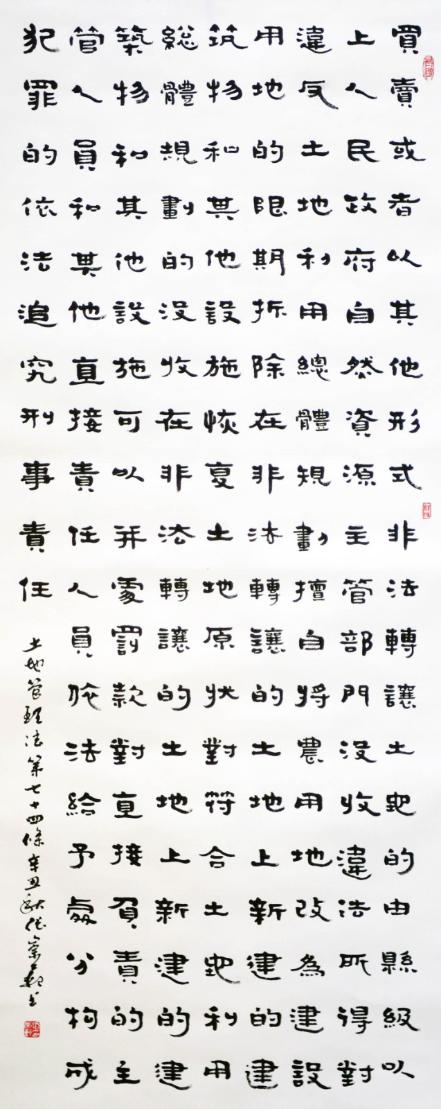 繼1600余位書法家參與書寫《中華人民共和國民法典》全部1260條法條之后,法治日報社聯(lián)合自然資源部法規(guī)司、自然資源部書畫研究會和北京昌平書法家協(xié)會,將筆端對準土地管理“一法一條例”,即《中華人民共和國土地管理法》和《中華人民共和國土地管理法實施條例》。
