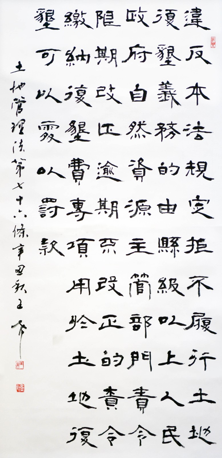 繼1600余位書法家參與書寫《中華人民共和國民法典》全部1260條法條之后,法治日報社聯(lián)合自然資源部法規(guī)司、自然資源部書畫研究會和北京昌平書法家協(xié)會,將筆端對準(zhǔn)土地管理“一法一條例”,即《中華人民共和國土地管理法》和《中華人民共和國土地管理法實施條例》。
