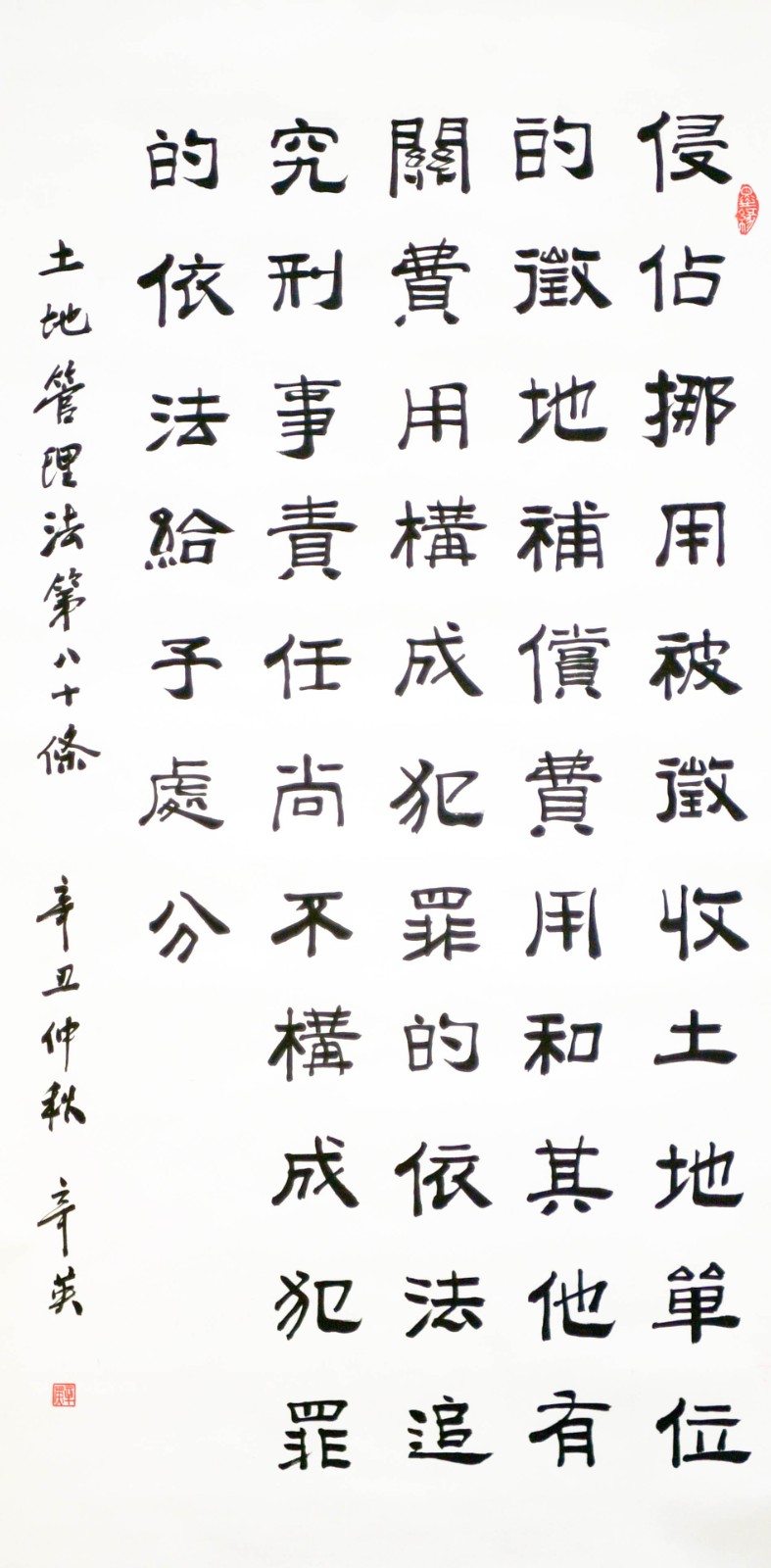 繼1600余位書法家參與書寫《中華人民共和國(guó)民法典》全部1260條法條之后,法治日?qǐng)?bào)社聯(lián)合自然資源部法規(guī)司、自然資源部書畫研究會(huì)和北京昌平書法家協(xié)會(huì),將筆端對(duì)準(zhǔn)土地管理“一法一條例”,即《中華人民共和國(guó)土地管理法》和《中華人民共和國(guó)土地管理法實(shí)施條例》。