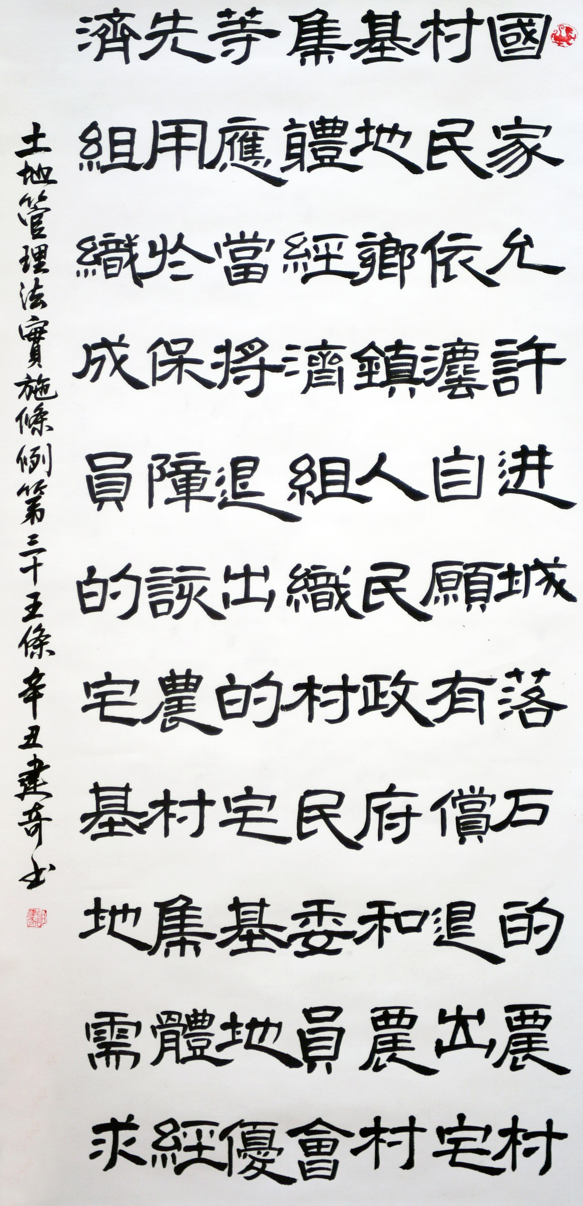 繼1600余位書法家參與書寫《中華人民共和國民法典》全部1260條法條之后,法治日報社聯合自然資源部法規(guī)司、自然資源部書畫研究會和北京昌平書法家協會,將筆端對準土地管理“一法一條例”,即《中華人民共和國土地管理法》和《中華人民共和國土地管理法實施條例》。