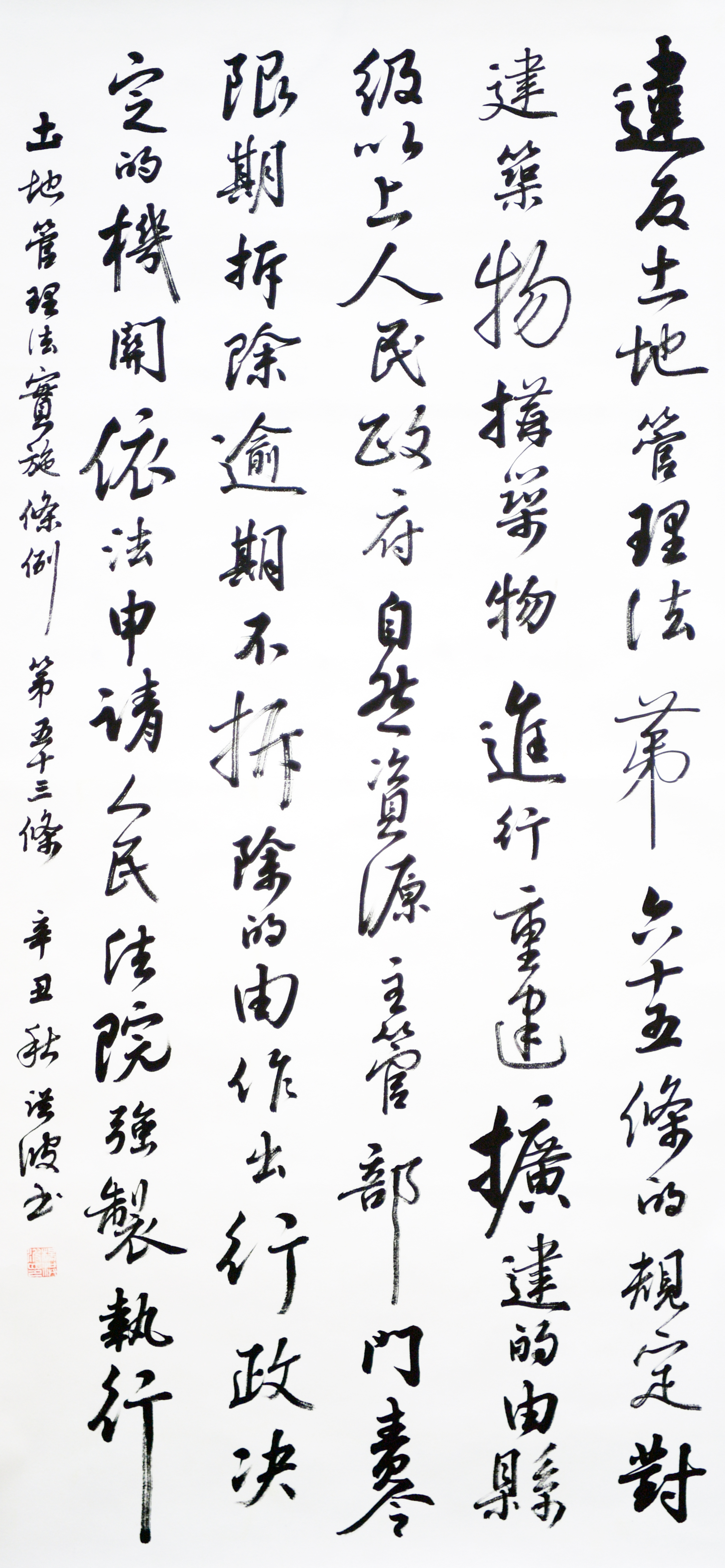 繼1600余位書(shū)法家參與書(shū)寫(xiě)《中華人民共和國(guó)民法典》全部1260條法條之后,法治日?qǐng)?bào)社聯(lián)合自然資源部法規(guī)司、自然資源部書(shū)畫(huà)研究會(huì)和北京昌平書(shū)法家協(xié)會(huì),將筆端對(duì)準(zhǔn)土地管理“一法一條例”,即《中華人民共和國(guó)土地管理法》和《中華人民共和國(guó)土地管理法實(shí)施條例》。