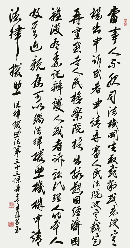 “書·法”活動(dòng)旨在為創(chuàng)新法治宣傳教育,多開一點(diǎn)腦洞、多花一點(diǎn)心思、多出一點(diǎn)力量、多做一點(diǎn)貢獻(xiàn),引領(lǐng)和推動(dòng)更多的人拿起筆來學(xué)法、寫法,在不斷“書·法”過程中,提升自身的法治素養(yǎng),在全社會(huì)弘揚(yáng)法治精神。
