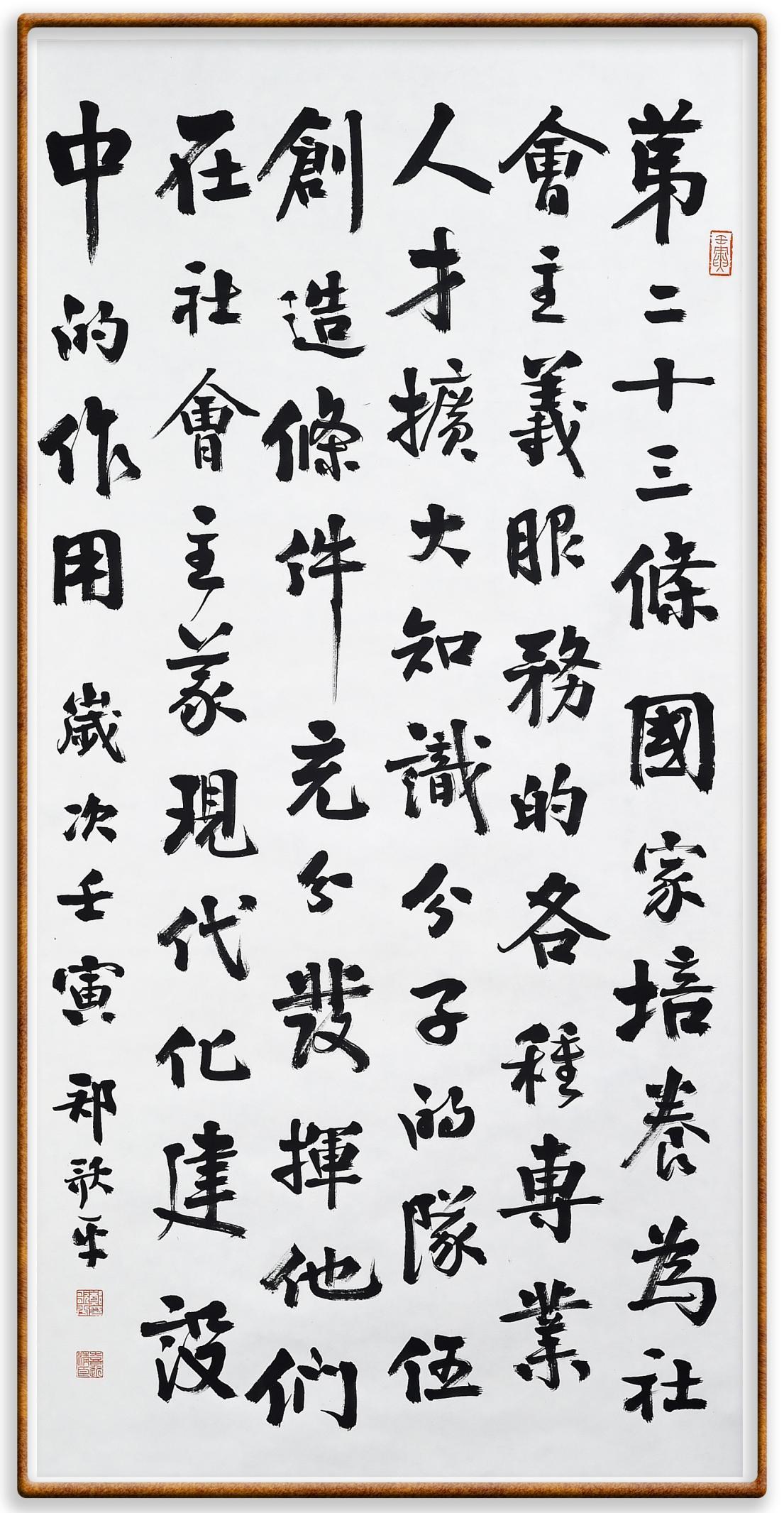 繼《中華人民共和國民法典》《中華人民共和國土地管理法》《中華人民共和國土地管理法實(shí)施條例》《中華人民共和國法律援助法》之后,法治日?qǐng)?bào)社聯(lián)合北京市司法局、北京市書法家協(xié)會(huì),將筆端對(duì)準(zhǔn)《中華人民共和國憲法》和《中華人民共和國行政處罰法》。