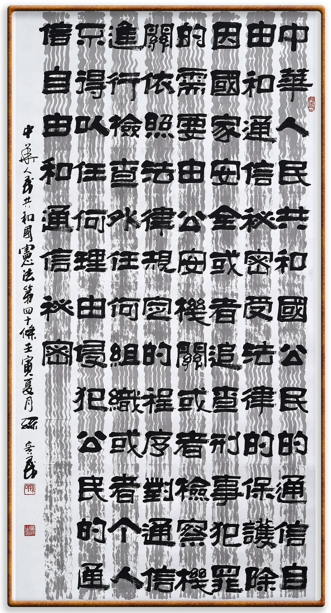 繼《中華人民共和國民法典》《中華人民共和國土地管理法》《中華人民共和國土地管理法實(shí)施條例》《中華人民共和國法律援助法》之后,法治日?qǐng)?bào)社聯(lián)合北京市司法局、北京市書法家協(xié)會(huì),將筆端對(duì)準(zhǔn)《中華人民共和國憲法》和《中華人民共和國行政處罰法》。