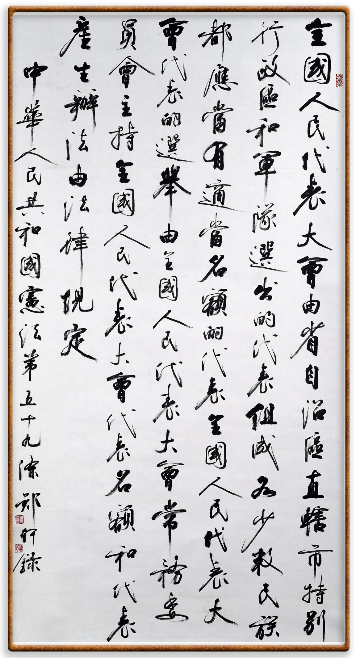 繼《中華人民共和國民法典》《中華人民共和國土地管理法》《中華人民共和國土地管理法實施條例》《中華人民共和國法律援助法》之后,法治日報社聯(lián)合北京市司法局、北京書法家協(xié)會,將筆端對準(zhǔn)《中華人民共和國憲法》和《中華人民共和國行政處罰法》。