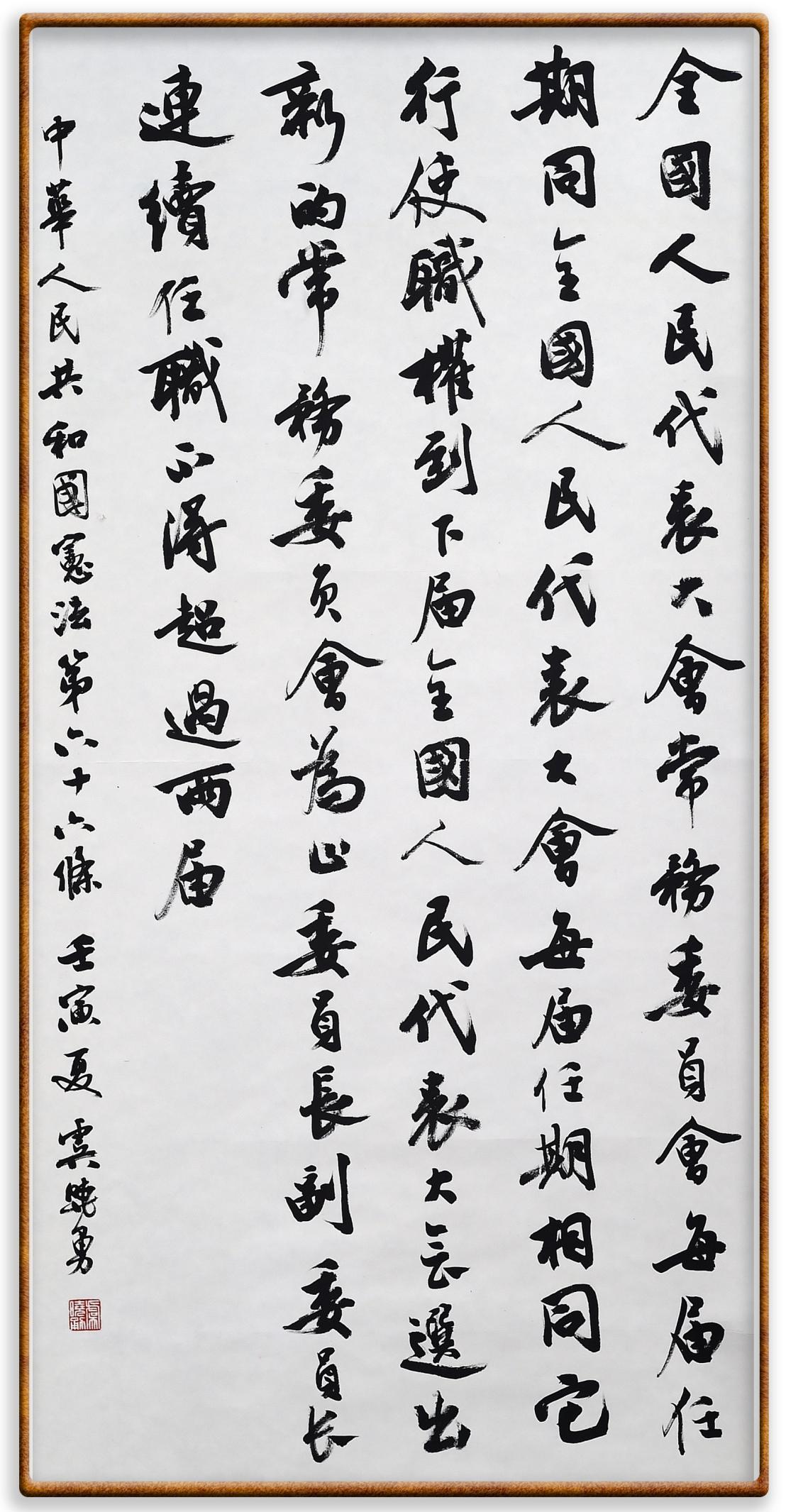 繼《中華人民共和國民法典》《中華人民共和國土地管理法》《中華人民共和國土地管理法實(shí)施條例》《中華人民共和國法律援助法》之后,法治日報(bào)社聯(lián)合北京市司法局、北京書法家協(xié)會,將筆端對準(zhǔn)《中華人民共和國憲法》和《中華人民共和國行政處罰法》。