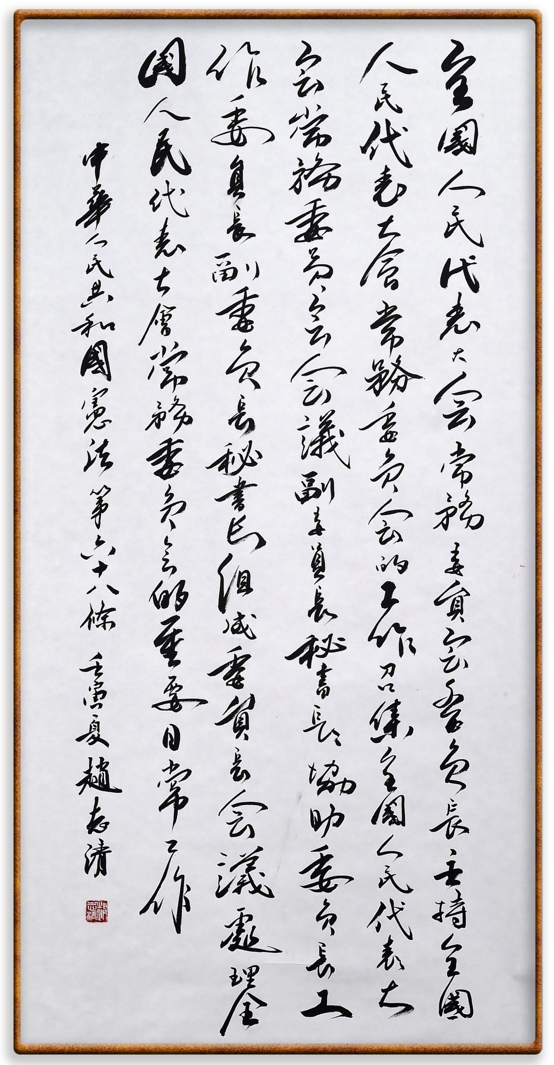 繼《中華人民共和國民法典》《中華人民共和國土地管理法》《中華人民共和國土地管理法實施條例》《中華人民共和國法律援助法》之后,法治日報社聯(lián)合北京市司法局、北京書法家協(xié)會,將筆端對準《中華人民共和國憲法》和《中華人民共和國行政處罰法》。