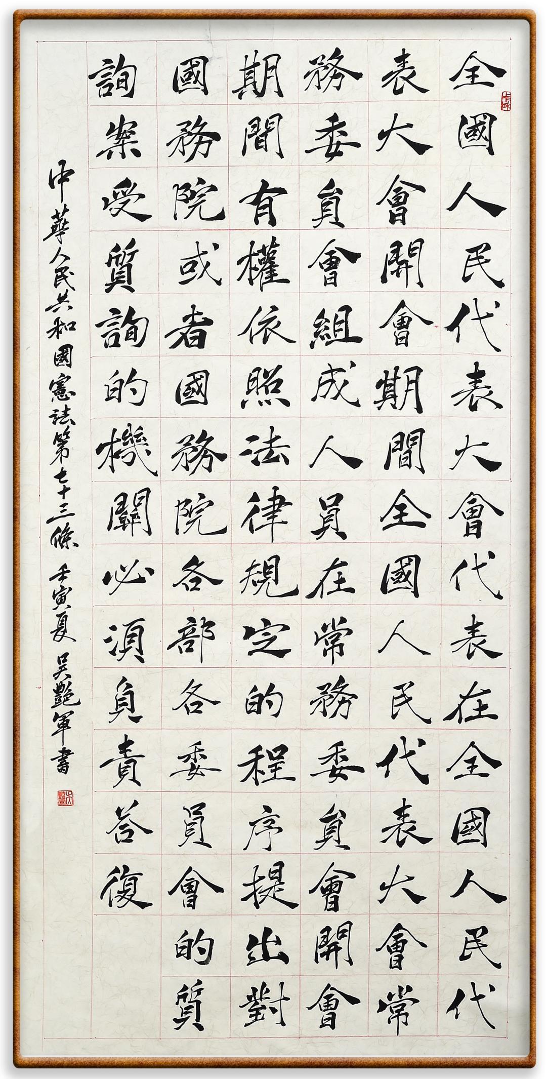 繼《中華人民共和國民法典》《中華人民共和國土地管理法》《中華人民共和國土地管理法實施條例》《中華人民共和國法律援助法》之后,法治日報社聯(lián)合北京市司法局、北京書法家協(xié)會,將筆端對準(zhǔn)《中華人民共和國憲法》和《中華人民共和國行政處罰法》。