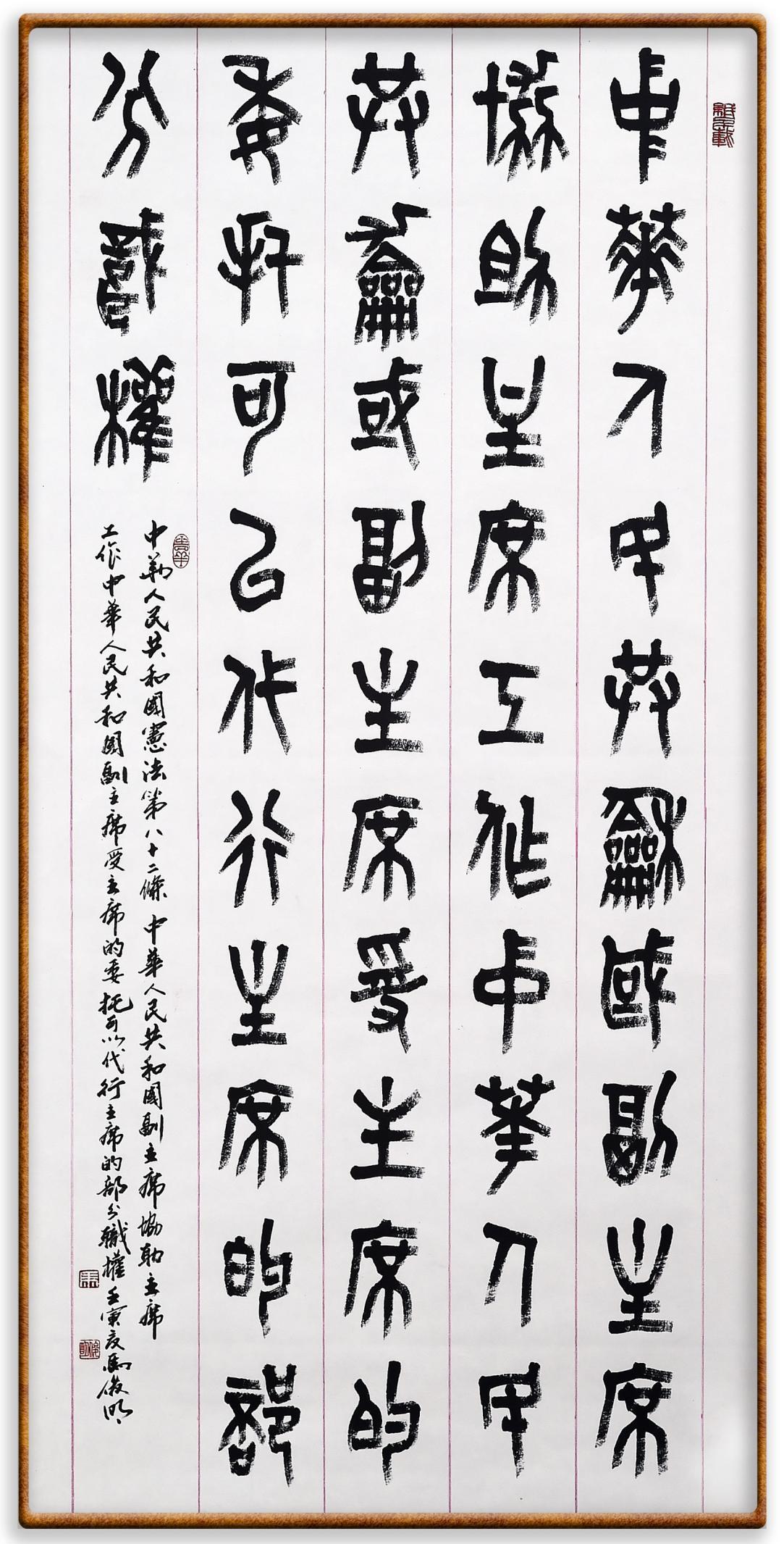 繼《中華人民共和國民法典》《中華人民共和國土地管理法》《中華人民共和國土地管理法實(shí)施條例》《中華人民共和國法律援助法》之后,法治日?qǐng)?bào)社聯(lián)合北京市司法局、北京書法家協(xié)會(huì),將筆端對(duì)準(zhǔn)《中華人民共和國憲法》和《中華人民共和國行政處罰法》。