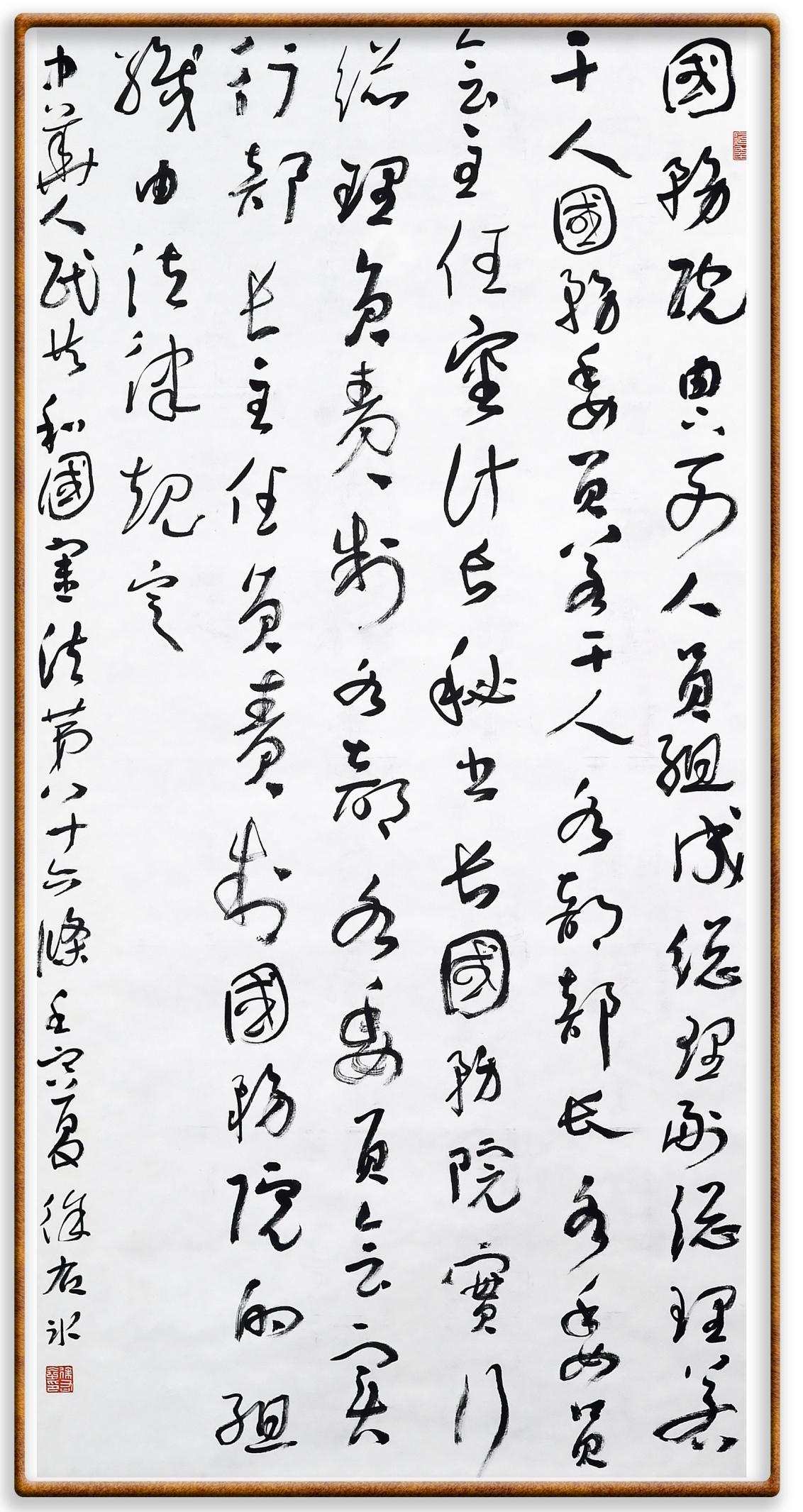 繼《中華人民共和國民法典》《中華人民共和國土地管理法》《中華人民共和國土地管理法實(shí)施條例》《中華人民共和國法律援助法》之后,法治日報(bào)社聯(lián)合北京市司法局、北京書法家協(xié)會(huì),將筆端對準(zhǔn)《中華人民共和國憲法》和《中華人民共和國行政處罰法》。