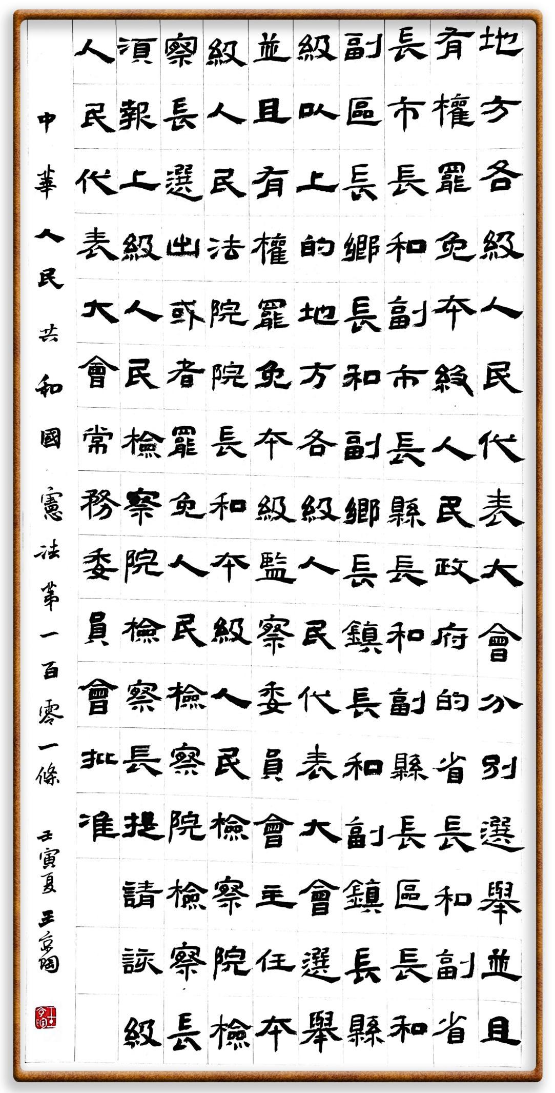 繼《中華人民共和國民法典》《中華人民共和國土地管理法》《中華人民共和國土地管理法實施條例》《中華人民共和國法律援助法》之后,法治日報社聯(lián)合北京市司法局、北京書法家協(xié)會,將筆端對準《中華人民共和國憲法》和《中華人民共和國行政處罰法》。