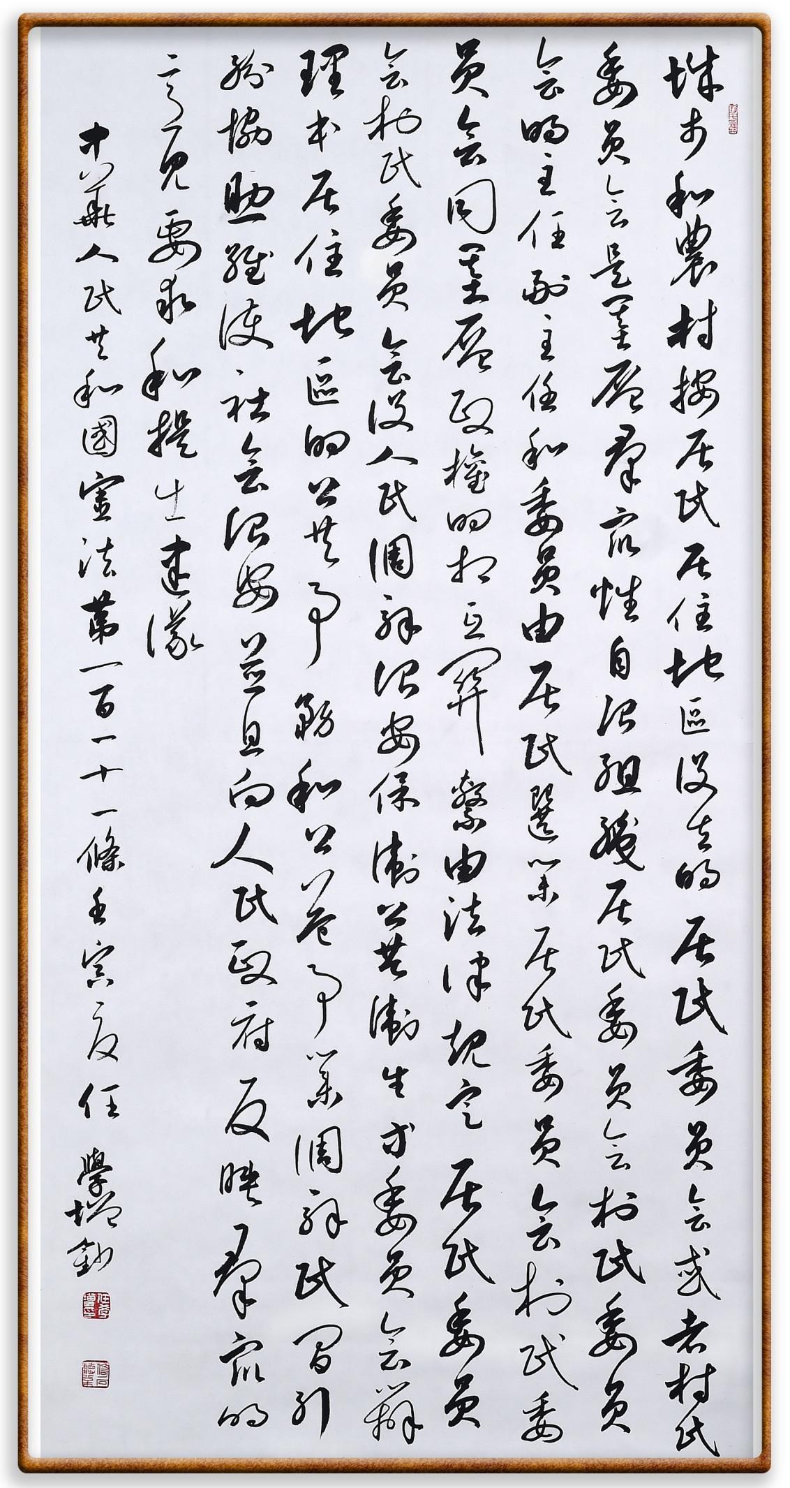 繼《中華人民共和國民法典》《中華人民共和國土地管理法》《中華人民共和國土地管理法實施條例》《中華人民共和國法律援助法》之后,法治日報社聯(lián)合北京市司法局、北京書法家協(xié)會,將筆端對準(zhǔn)《中華人民共和國憲法》和《中華人民共和國行政處罰法》。