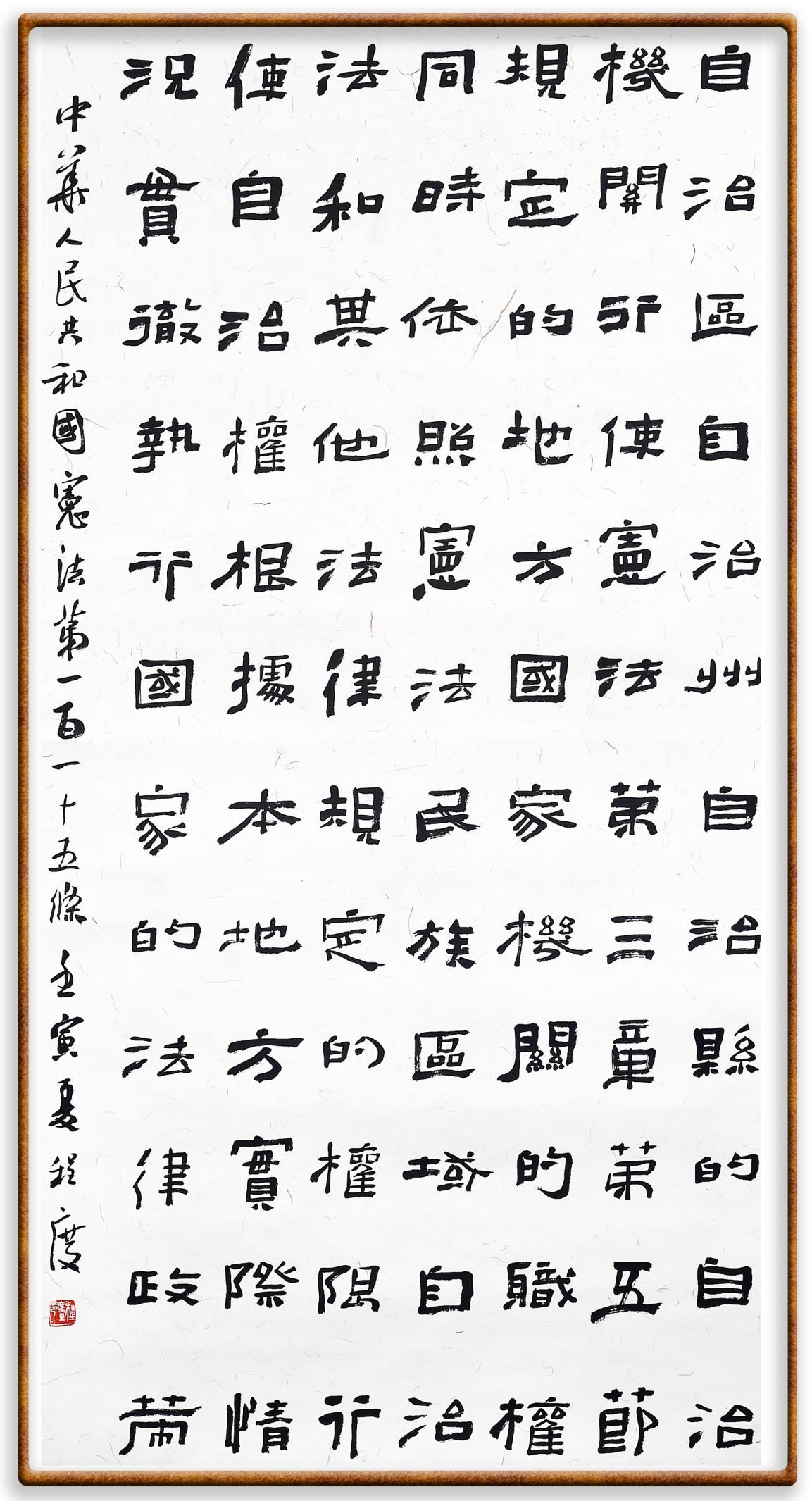 繼《中華人民共和國民法典》《中華人民共和國土地管理法》《中華人民共和國土地管理法實施條例》《中華人民共和國法律援助法》之后,法治日報社聯(lián)合北京市司法局、北京書法家協(xié)會,將筆端對準《中華人民共和國憲法》和《中華人民共和國行政處罰法》。