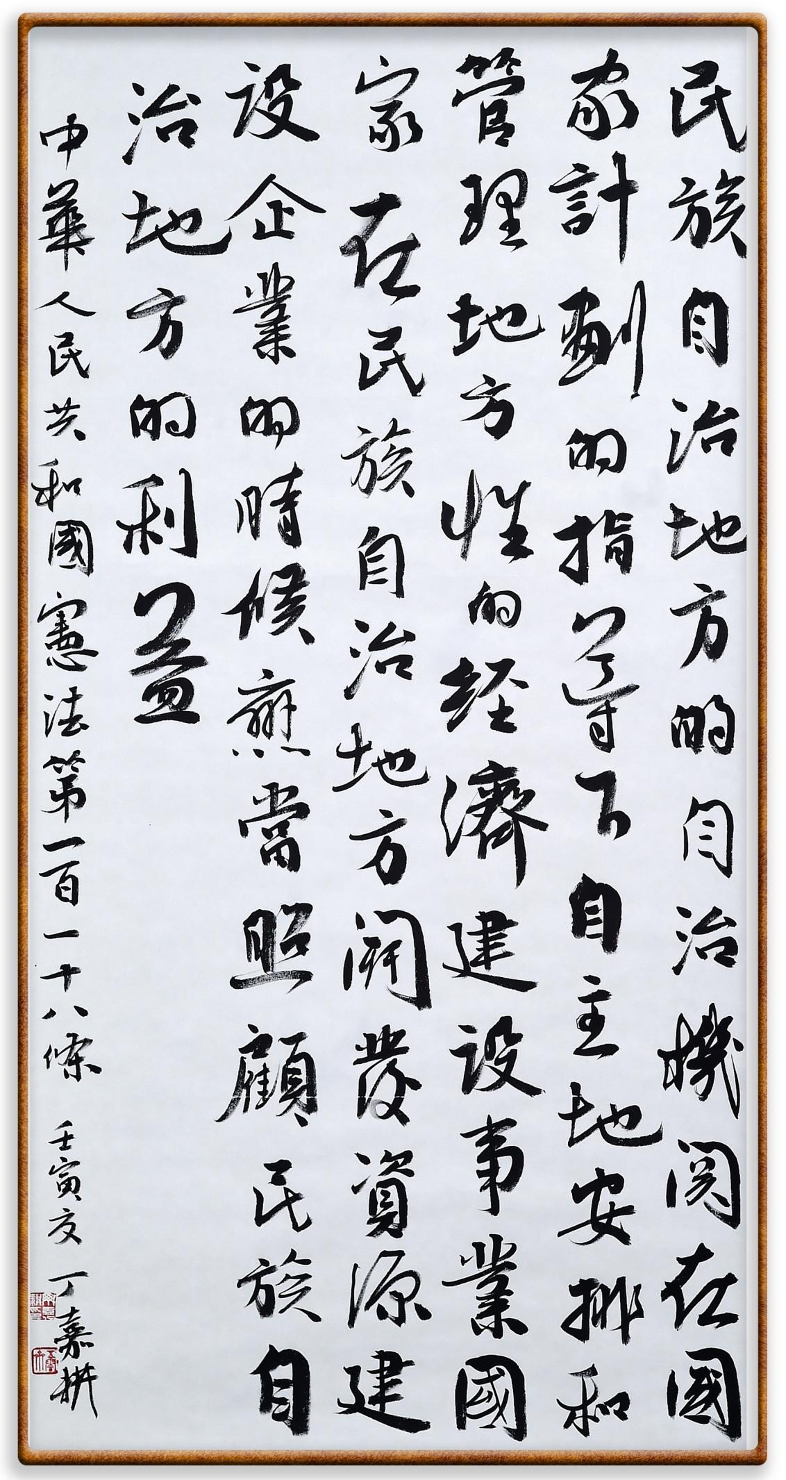 繼《中華人民共和國民法典》《中華人民共和國土地管理法》《中華人民共和國土地管理法實施條例》《中華人民共和國法律援助法》之后,法治日報社聯(lián)合北京市司法局、北京書法家協(xié)會,將筆端對準《中華人民共和國憲法》和《中華人民共和國行政處罰法》。