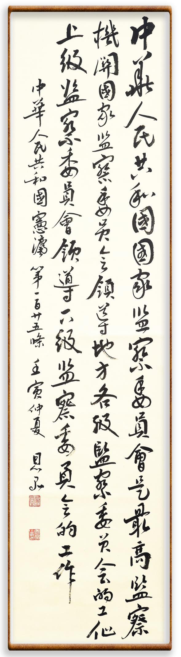 繼《中華人民共和國民法典》《中華人民共和國土地管理法》《中華人民共和國土地管理法實施條例》《中華人民共和國法律援助法》之后,法治日報社聯(lián)合北京市司法局、北京書法家協(xié)會,將筆端對準(zhǔn)《中華人民共和國憲法》和《中華人民共和國行政處罰法》。