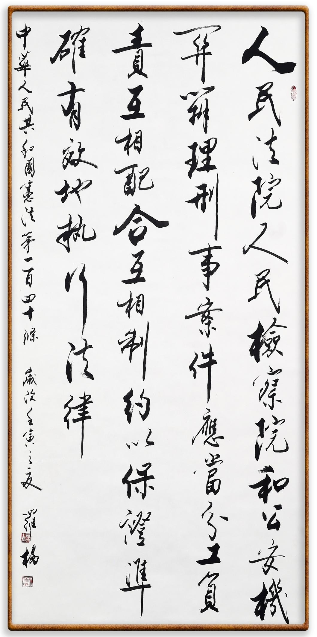 繼《中華人民共和國民法典》《中華人民共和國土地管理法》《中華人民共和國土地管理法實(shí)施條例》《中華人民共和國法律援助法》之后,法治日?qǐng)?bào)社聯(lián)合北京市司法局、北京書法家協(xié)會(huì),將筆端對(duì)準(zhǔn)《中華人民共和國憲法》和《中華人民共和國行政處罰法》。
