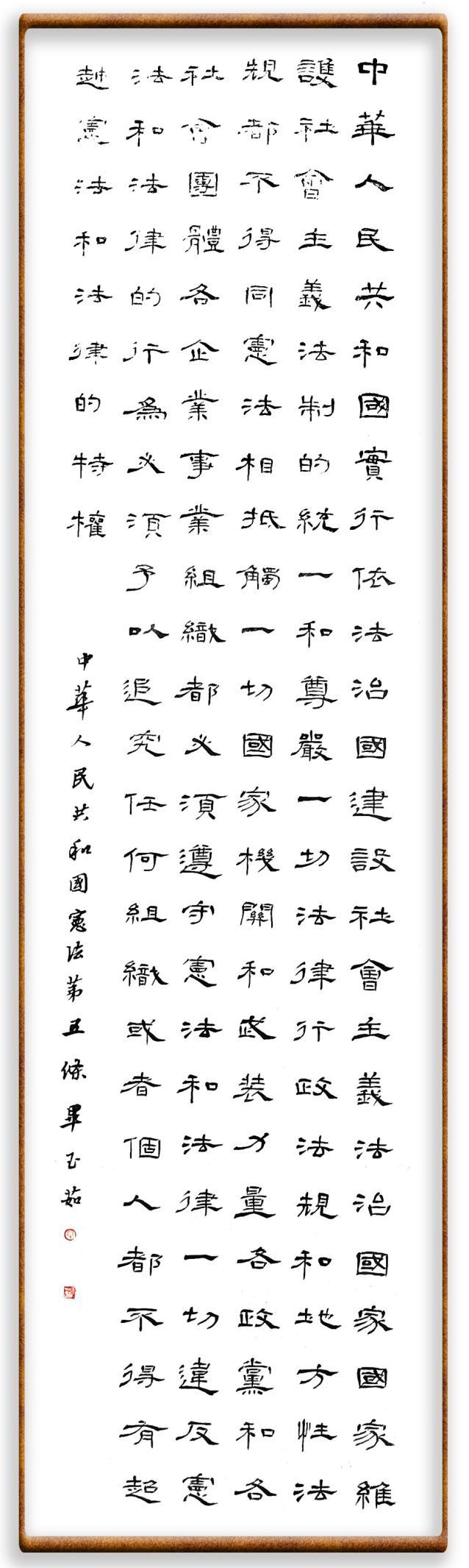 繼《中華人民共和國民法典》《中華人民共和國土地管理法》《中華人民共和國土地管理法實施條例》《中華人民共和國法律援助法》之后,法治日報社聯(lián)合北京市司法局、北京書法家協(xié)會,將筆端對準《中華人民共和國憲法》和《中華人民共和國行政處罰法》。