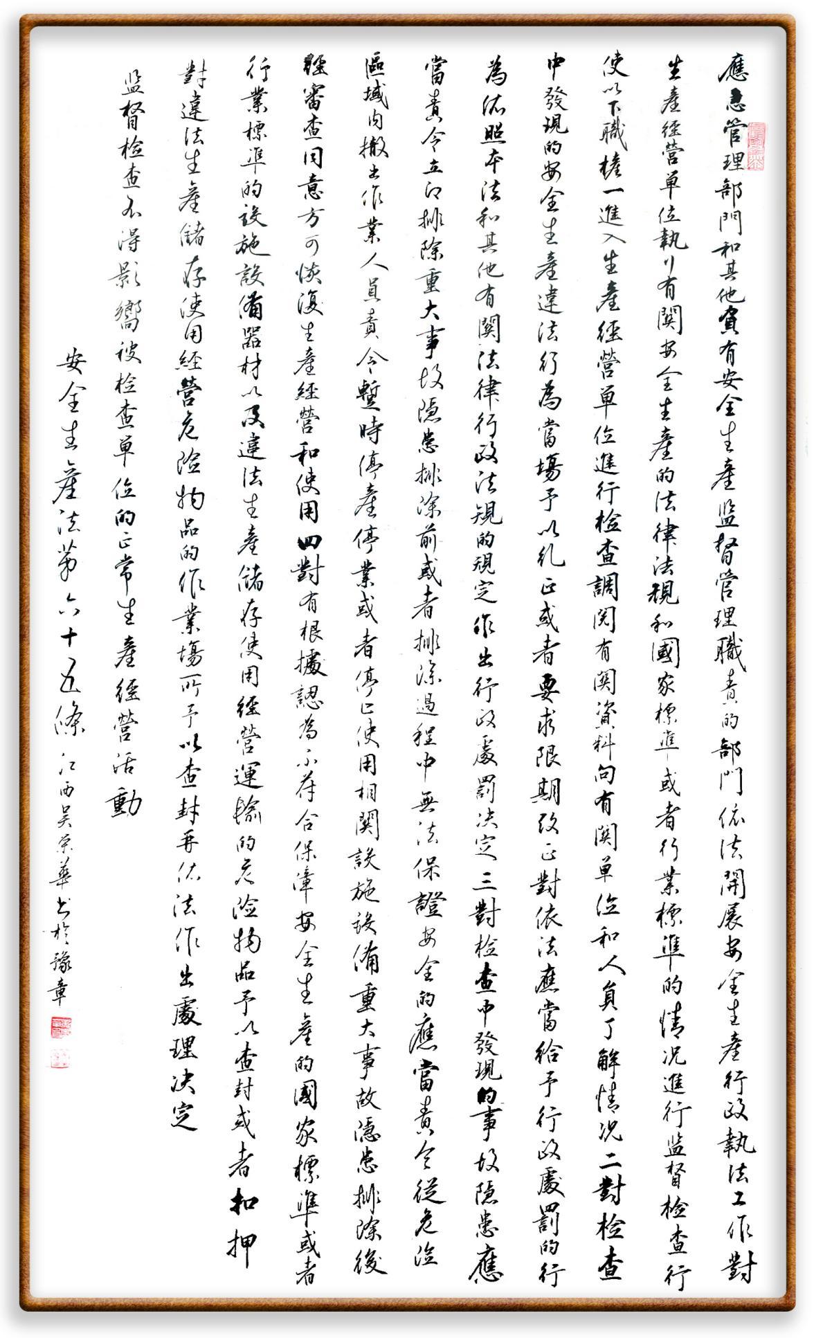 (二)對檢查中發(fā)現(xiàn)的安全生產(chǎn)違法行為,當(dāng)場予以糾正或者要求限期改正;對依法應(yīng)當(dāng)給予行政處罰的行為,依照本法和其他有關(guān)法律、行政法規(guī)的規(guī)定作出行政處罰決定;