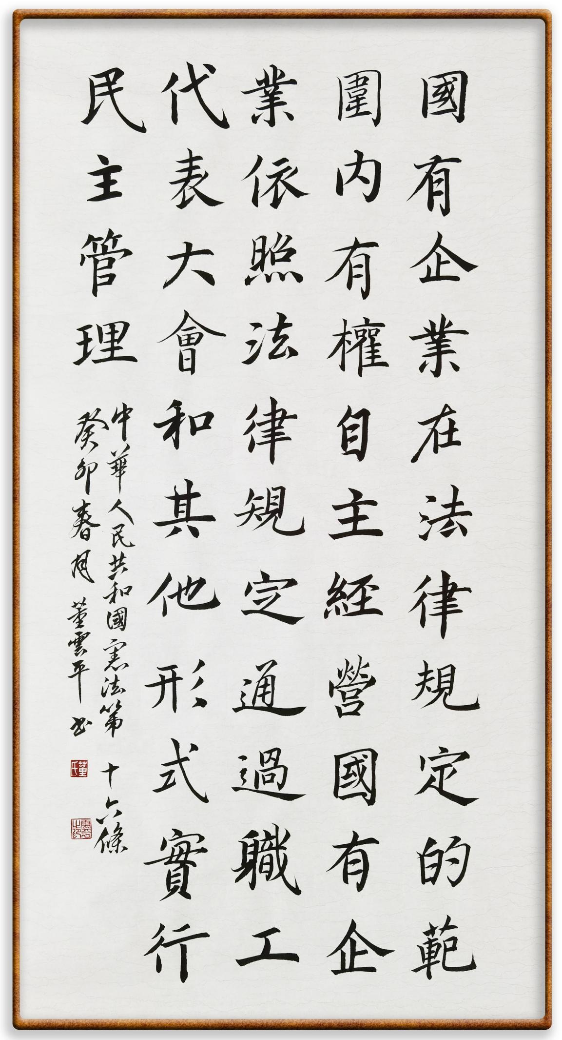 繼《中華人民共和國民法典》《中華人民共和國土地管理法》《中華人民共和國土地管理法實(shí)施條例》《中華人民共和國法律援助法》之后,法治日?qǐng)?bào)社聯(lián)合北京市司法局、北京書法家協(xié)會(huì),將筆端對(duì)準(zhǔn)《中華人民共和國憲法》和《中華人民共和國行政處罰法》。