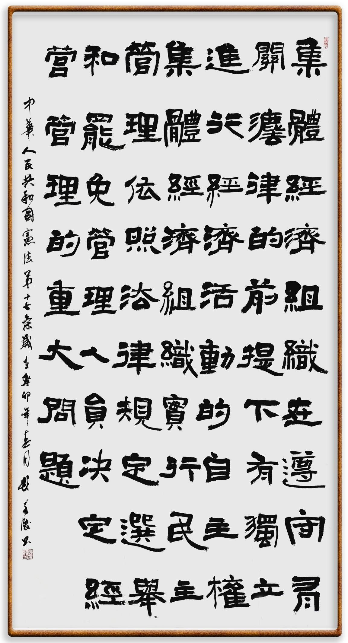 繼《中華人民共和國民法典》《中華人民共和國土地管理法》《中華人民共和國土地管理法實施條例》《中華人民共和國法律援助法》之后,法治日報社聯(lián)合北京市司法局、北京書法家協(xié)會,將筆端對準《中華人民共和國憲法》和《中華人民共和國行政處罰法》。