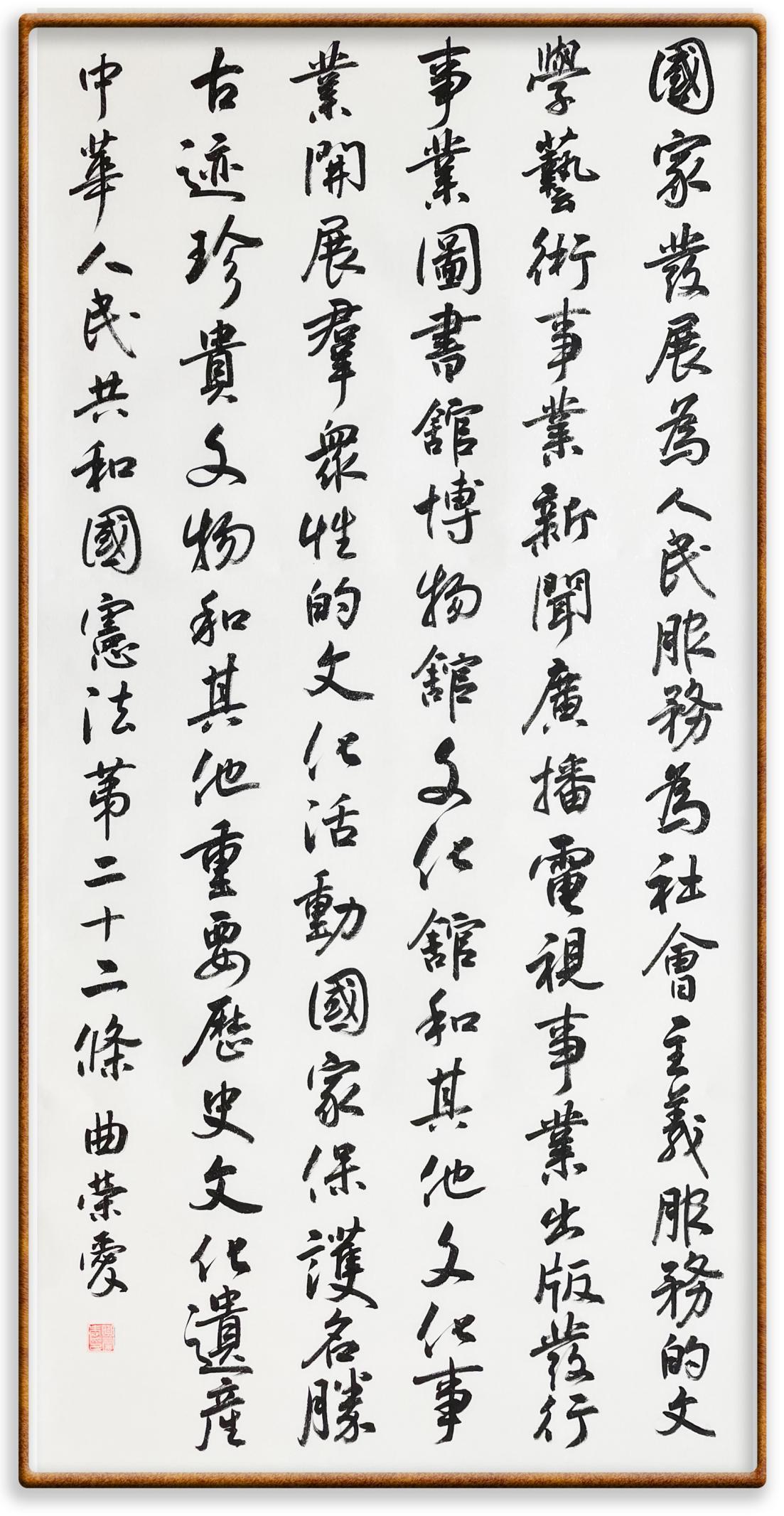 繼《中華人民共和國民法典》《中華人民共和國土地管理法》《中華人民共和國土地管理法實(shí)施條例》《中華人民共和國法律援助法》之后,法治日報(bào)社聯(lián)合北京市司法局、北京書法家協(xié)會(huì),將筆端對(duì)準(zhǔn)《中華人民共和國憲法》和《中華人民共和國行政處罰法》。