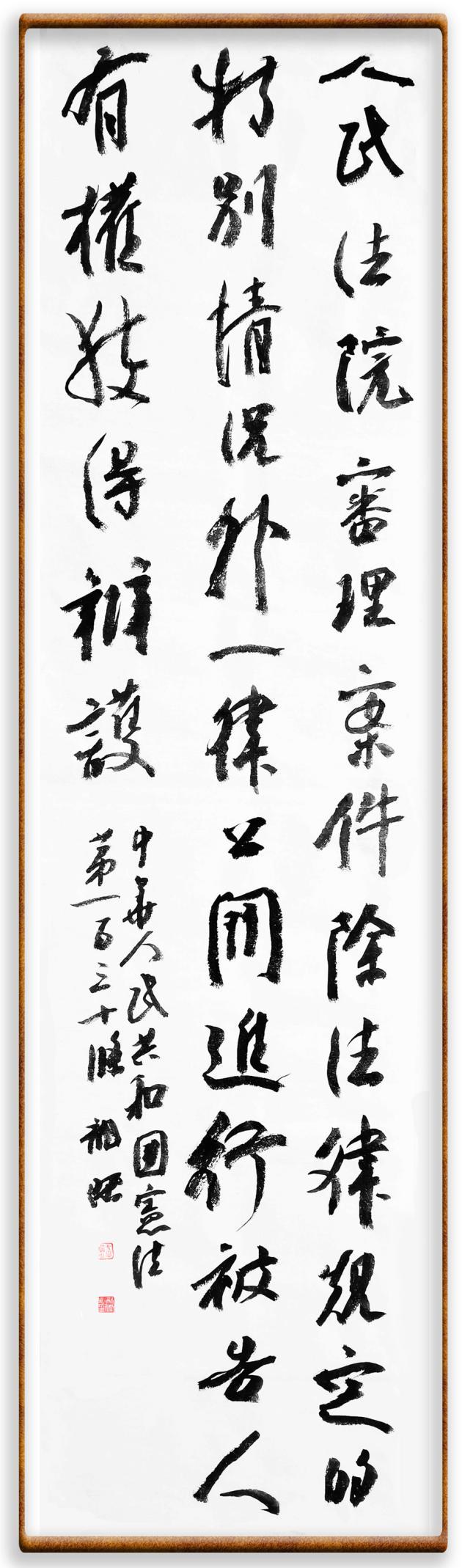 繼《中華人民共和國民法典》《中華人民共和國土地管理法》《中華人民共和國土地管理法實(shí)施條例》《中華人民共和國法律援助法》之后,法治日?qǐng)?bào)社聯(lián)合北京市司法局、北京書法家協(xié)會(huì),將筆端對(duì)準(zhǔn)《中華人民共和國憲法》和《中華人民共和國行政處罰法》。