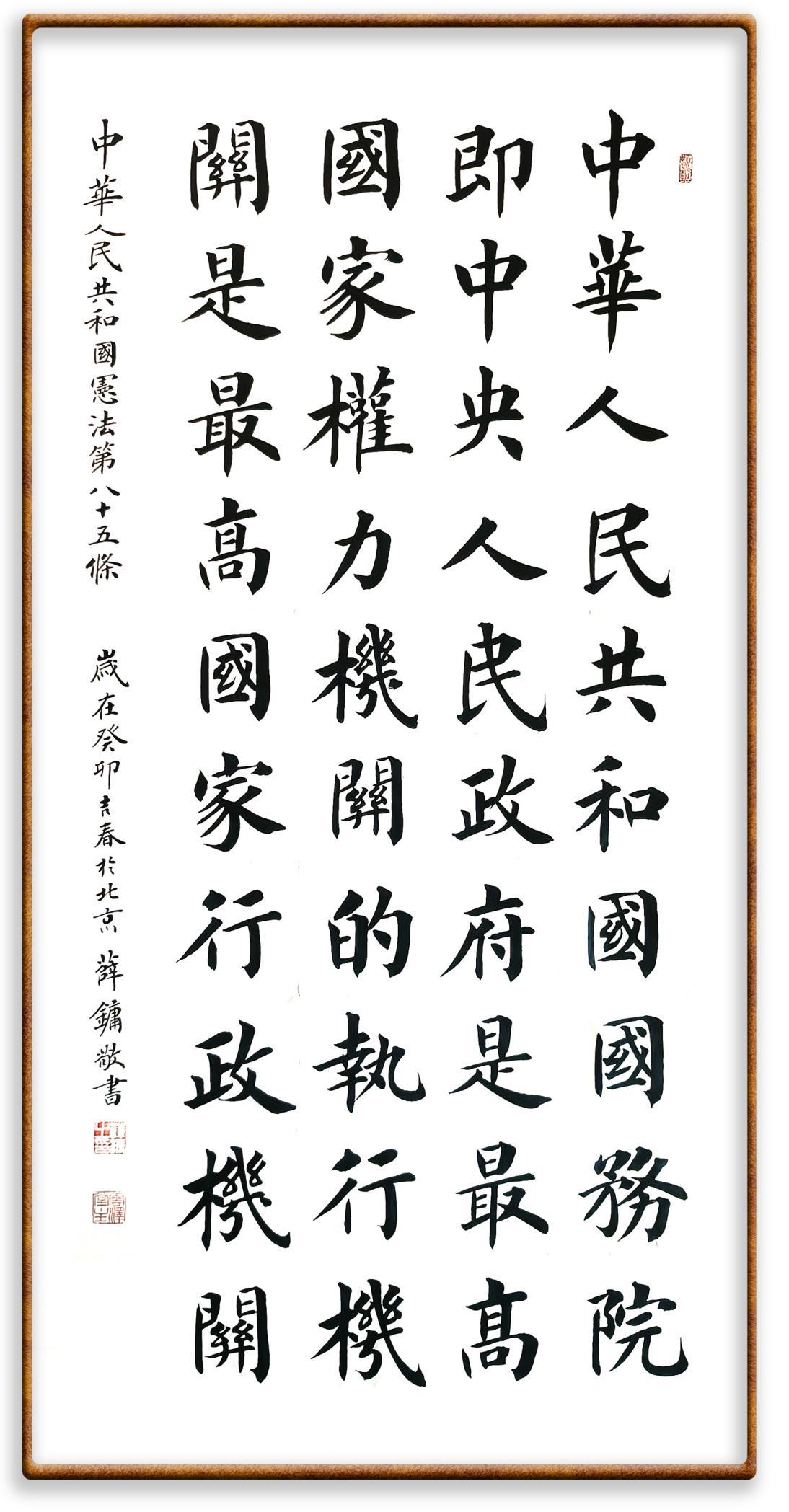 繼《中華人民共和國民法典》《中華人民共和國土地管理法》《中華人民共和國土地管理法實(shí)施條例》《中華人民共和國法律援助法》之后,法治日?qǐng)?bào)社聯(lián)合北京市司法局、北京書法家協(xié)會(huì),將筆端對(duì)準(zhǔn)《中華人民共和國憲法》和《中華人民共和國行政處罰法》。
