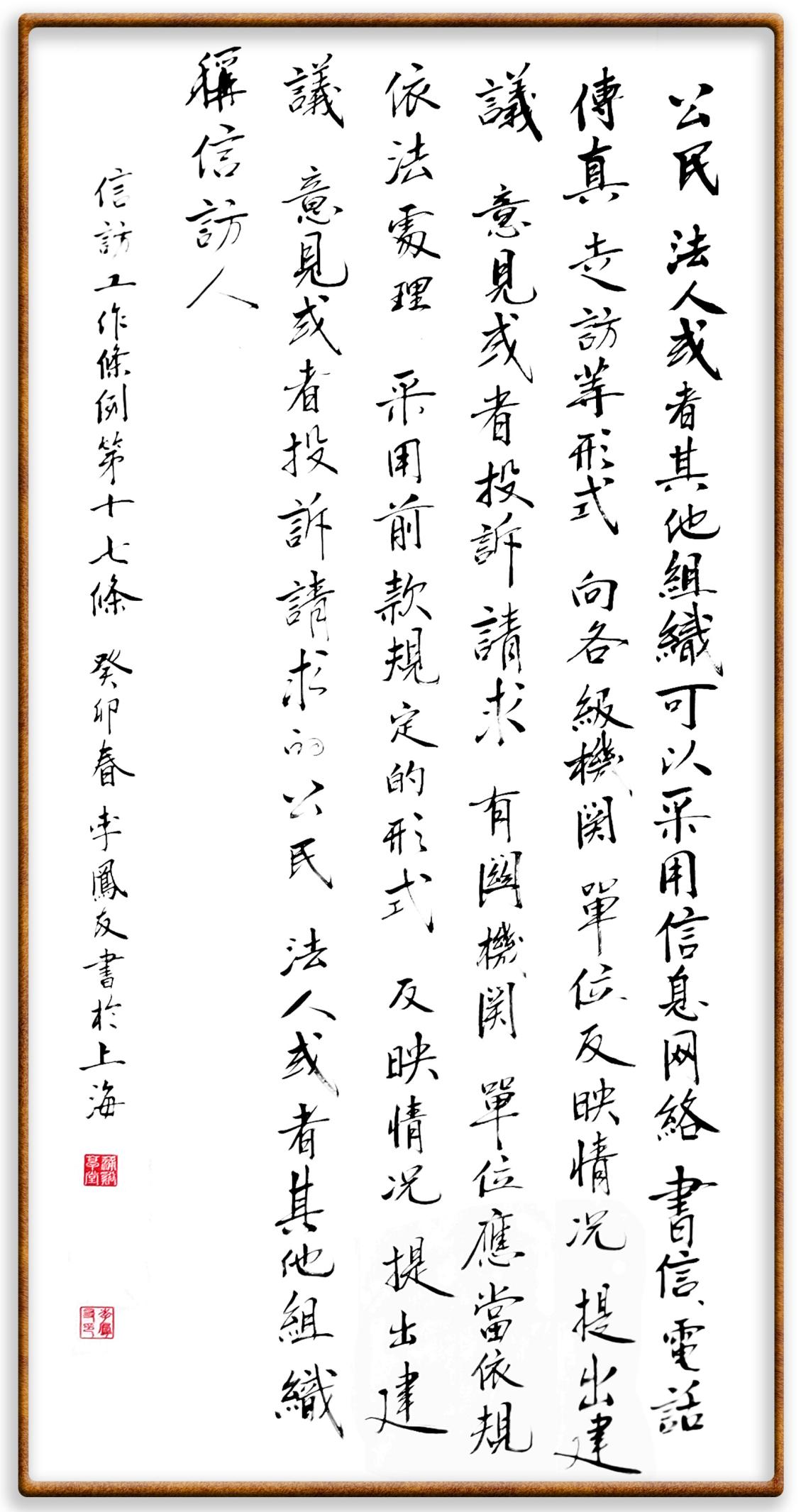 李鳳友,上海市信訪辦來訪協(xié)調(diào)處四級調(diào)研員,中國硬筆書法協(xié)會會員。