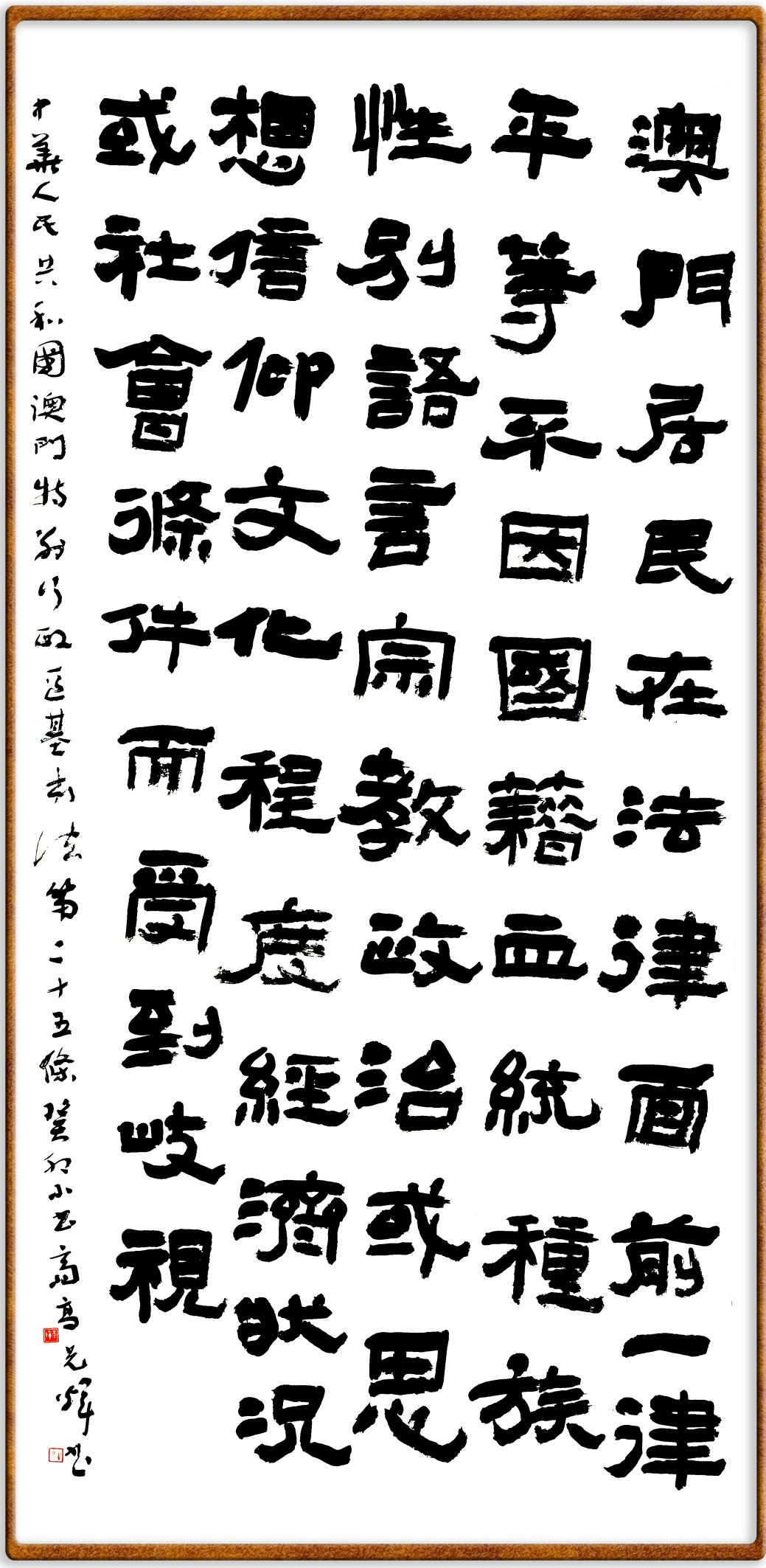 澳門基本法第二十五條 澳門居民在法律面前一律平等,不因國籍、血統(tǒng)、種族、性別、語言、宗教、政治或思想信仰、文化程度、經(jīng)濟狀況或社會條件而受到歧視。