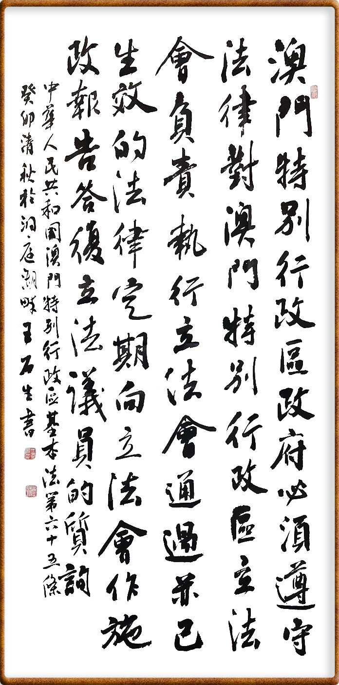 澳門基本法第六十五條 澳門特別行政區(qū)政府必須遵守法律,對澳門特別行政區(qū)立法會負責(zé):執(zhí)行立法會通過并已生效的法律;定期向立法會作施政報告;答復(fù)立法會議員的質(zhì)詢。