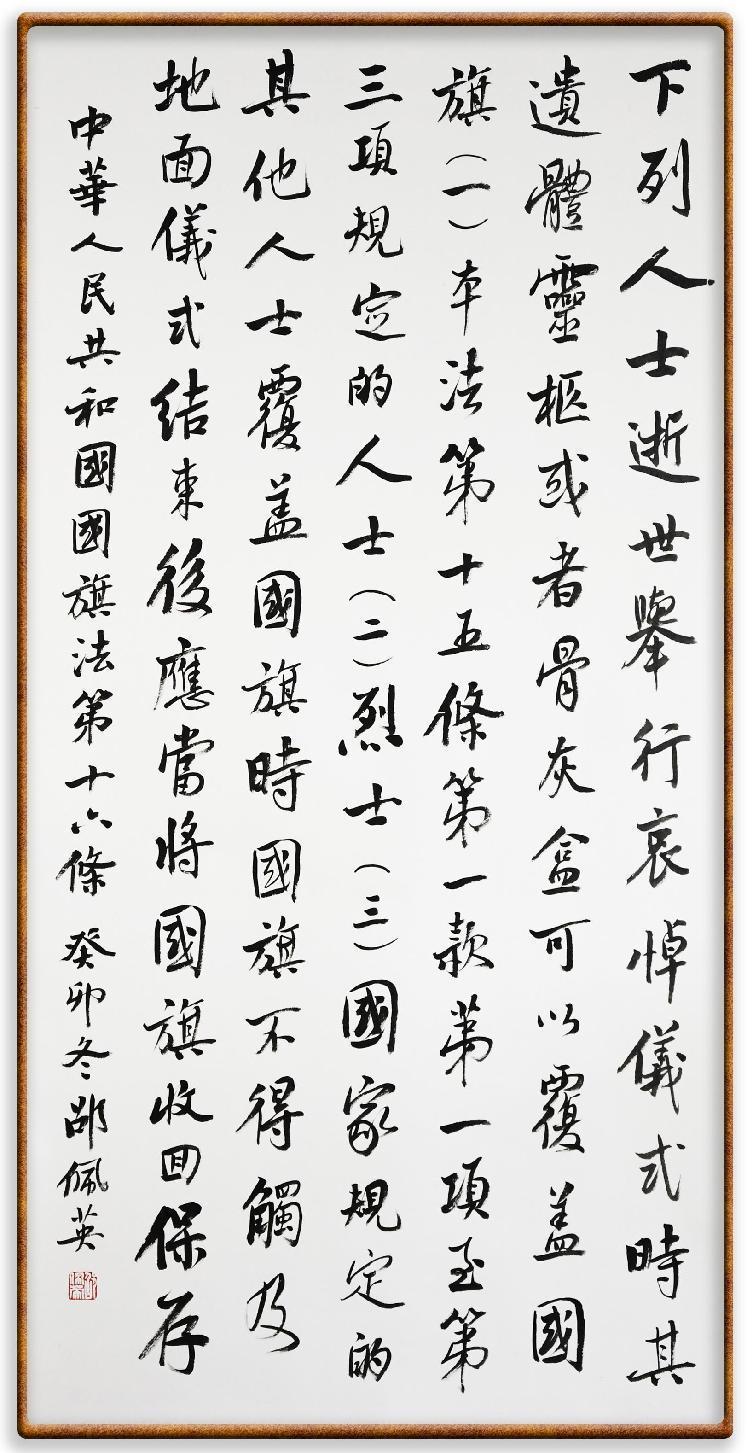 國旗法第十六條 下列人士逝世,舉行哀悼儀式時,其遺體、靈柩或者骨灰盒可以覆蓋國旗: