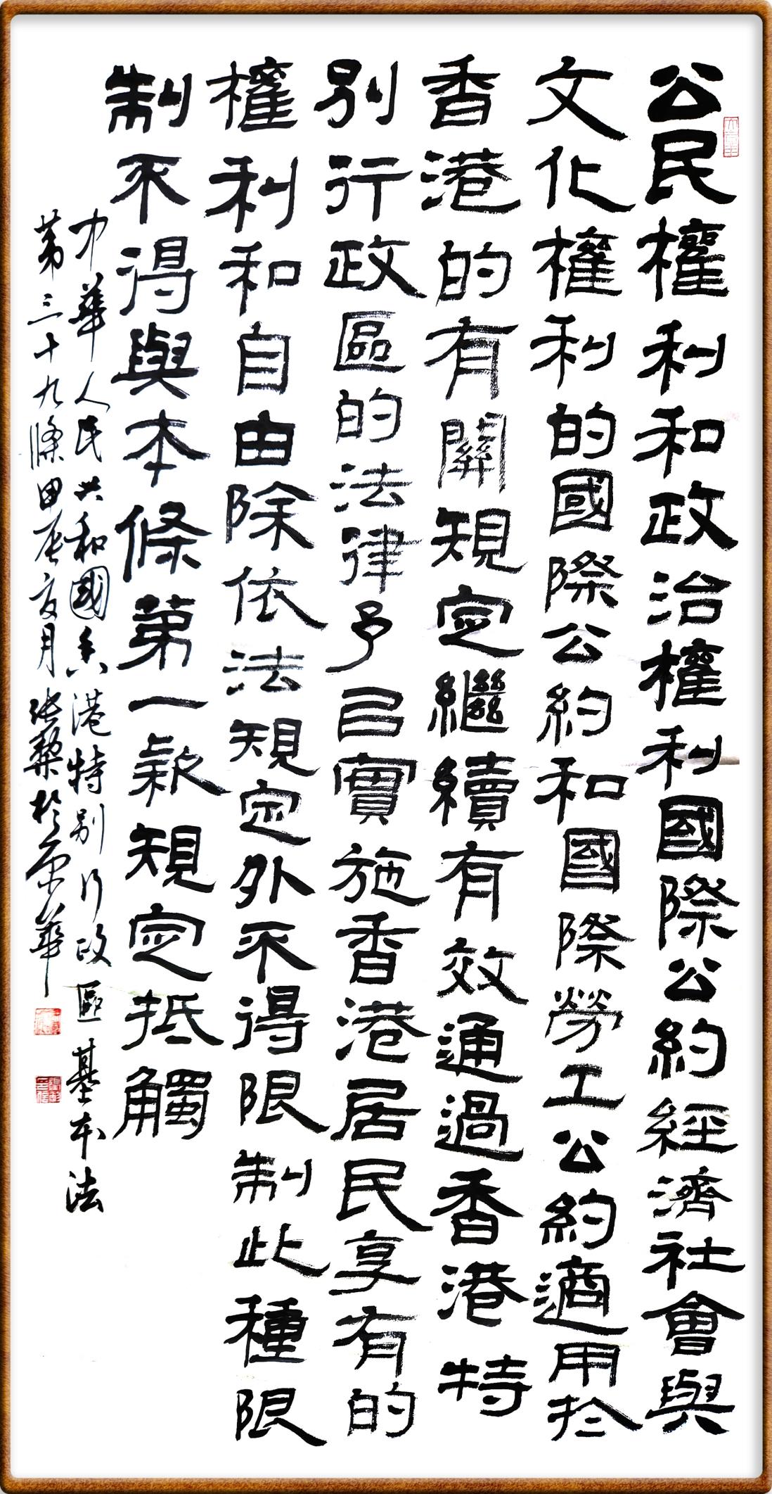 香港基本法第三十九條 《公民權(quán)利和政治權(quán)利國(guó)際公約》、《經(jīng)濟(jì)、社會(huì)與文化權(quán)利的國(guó)際公約》和國(guó)際勞工公約適用于香港的有關(guān)規(guī)定繼續(xù)有效,通過(guò)香港特別行政區(qū)的法律予以實(shí)施。