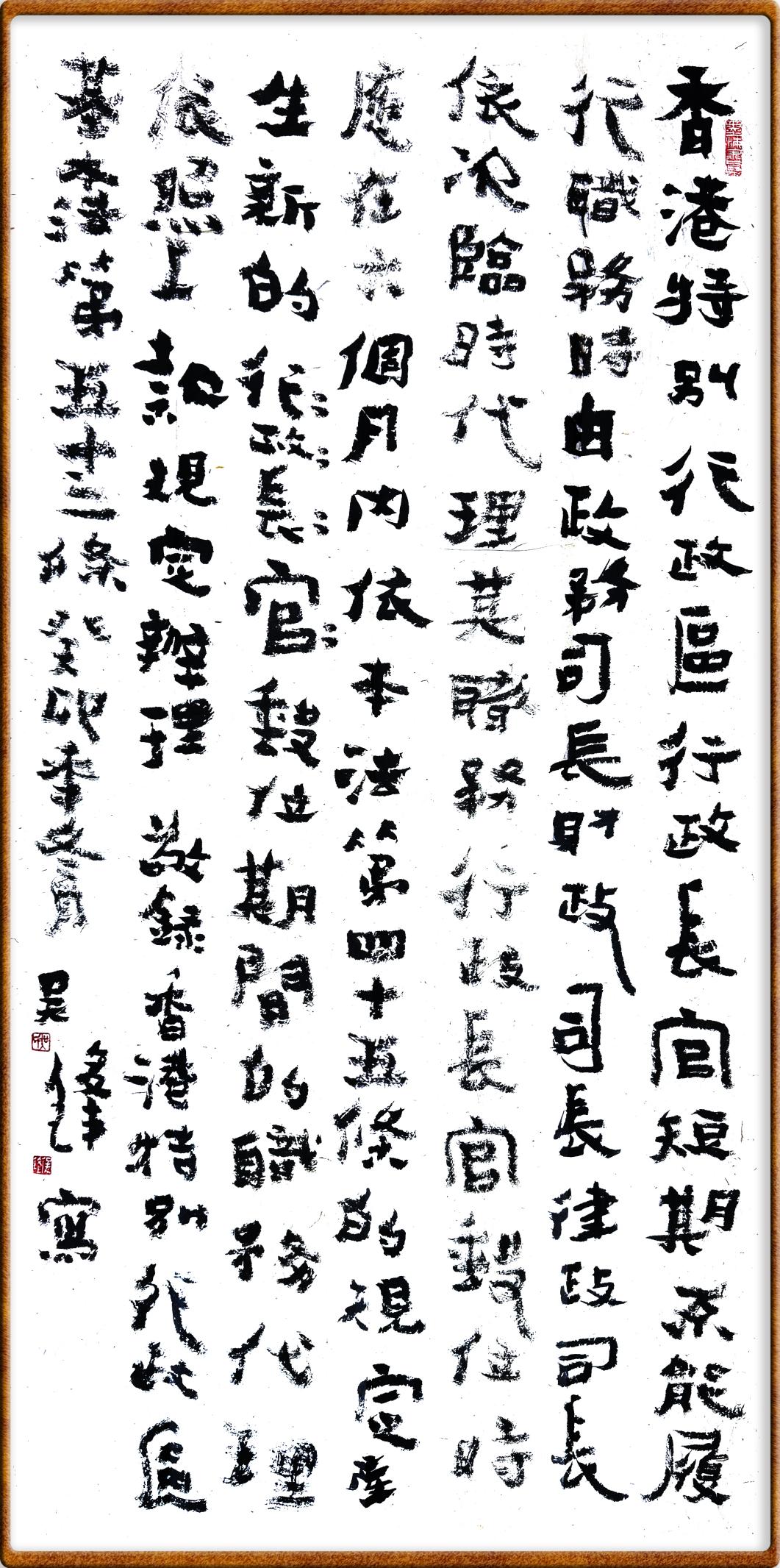 香港基本法第五十三條 香港特別行政區(qū)行政長官短期不能履行職務(wù)時,由政務(wù)司長、財政司長、律政司長依次臨時代理其職務(wù)。
