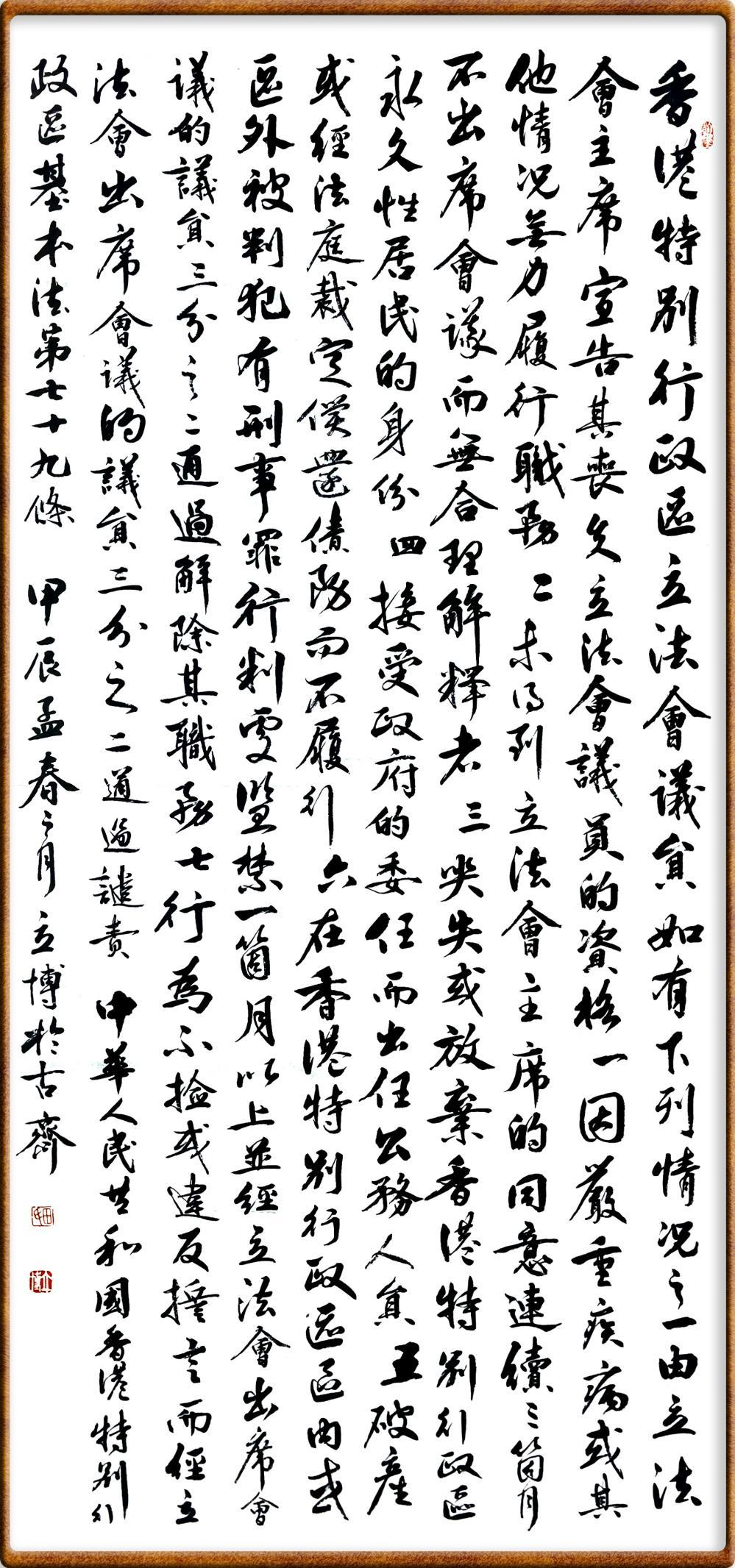 香港基本法第七十九條 香港特別行政區(qū)立法會議員如有下列情況之一,由立法會主席宣告其喪失立法會議員的資格: