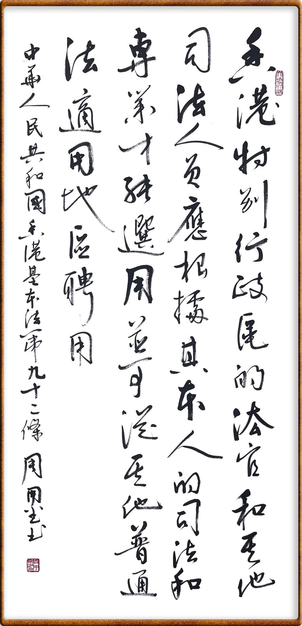 香港基本法第九十二條 香港特別行政區(qū)的法官和其他司法人員,應(yīng)根據(jù)其本人的司法和專(zhuān)業(yè)才能選用,并可從其他普通法適用地區(qū)聘用。