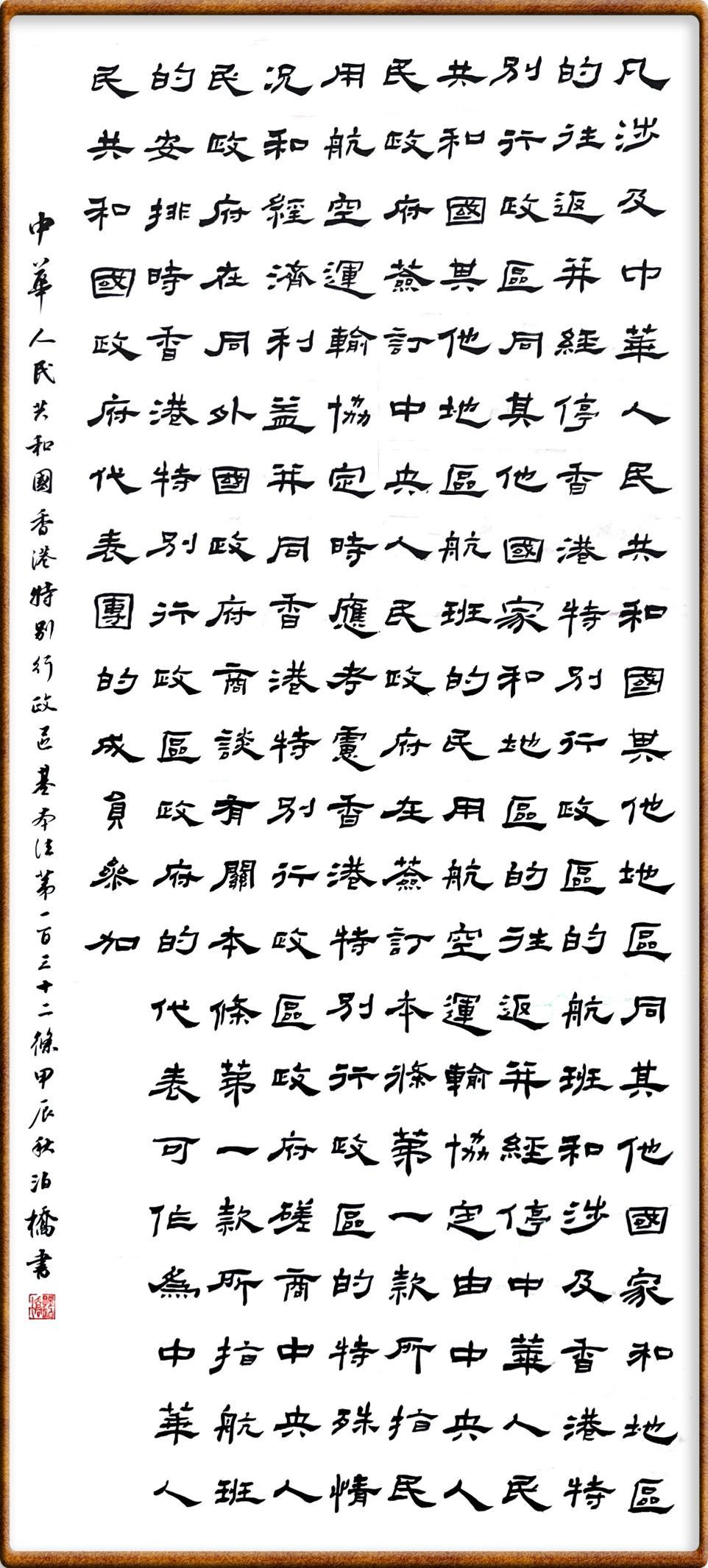 香港基本法第一百三十二條 凡涉及中華人民共和國(guó)其他地區(qū)同其他國(guó)家和地區(qū)的往返并經(jīng)停香港特別行政區(qū)的航班,和涉及香港特別行政區(qū)同其他國(guó)家和地區(qū)的往返并經(jīng)停中華人民共和國(guó)其他地區(qū)航班的民用航空運(yùn)輸協(xié)定,由中央人民政府簽訂。